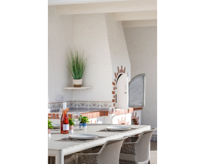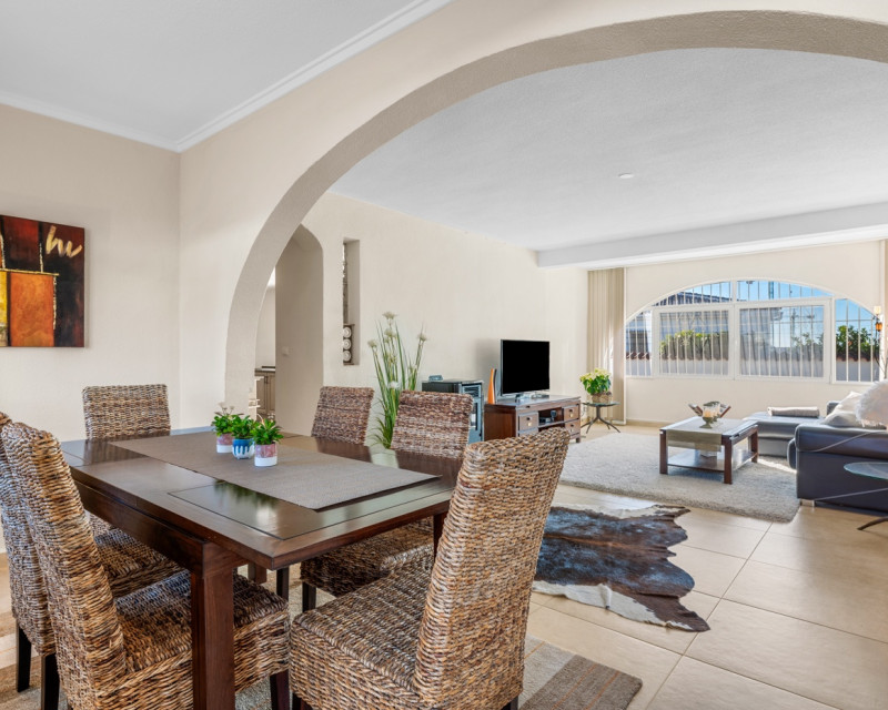 This beautiful detached villa is located in Ciudad Quesada, just a 5-minute walk from the town center, offering convenience while maintaining privacy and comfort. The property sits on a generous 500 m² plot and features 146 m² of built area. The house is distributed into three spacious bedrooms and two bathrooms, with the master bedroom benefiting from an en-suite bathroom. The villa boasts a bright and spacious living/dining area filled with natural light, creating a warm and welcoming atmosphere. The independent kitchen has direct access to the rear of the property, where you will find a private swimming pool, an outdoor kitchen, and access to the solarium—perfect for enjoying the Mediterranean lifestyle. From the side of the kitchen, there is also direct access to the interior garage and to a versatile space located beneath the garage. This area is ideal to be used as an additional bedroom, a social or entertainment area, or a cozy studio/home office. The exterior area surrounds the entire house and features fruit trees, providing a pleasant and private outdoor environment. The property has been recently renovated and is presented in perfect condition, ready to move into. This property is an excellent opportunity for both permanent living and investment in one of the most sought-after areas of Ciudad Quesada.