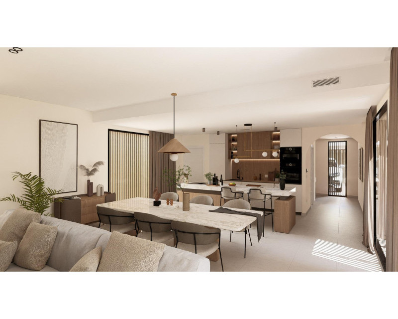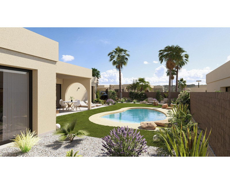 Contemporary One Level Villas in Altaona Golf Resort Murcia Prime Golf Resort Location Near Murcia City Discover this exclusive collection of new build detached villas located in the prestigious Altaona Golf Resort in Murcia. Set within a secure and peaceful environment surrounded by nature and an 18 hole golf course, this residential community offers the perfect balance between tranquility and accessibility. Altaona Golf is just 15 km from Murcia city center, where you will find shopping centers, restaurants, schools and medical services, while the beaches of the Costa Calida are only 20 km away. Murcia Corvera Airport is conveniently located 15 km from the resort, making this an ideal location for both permanent living and holiday homes. Modern Single Level Design with Private Garden and Pool These elegant villas are designed on one level for maximum comfort and functionality. Buyers can choose between 2, 3 or 4 bedrooms and 2 or 3 bathrooms plus a guest toilet. Each home features an open plan kitchen and living area that connects seamlessly to the outdoor terrace and private landscaped garden with swimming pool. A private parking space is included within the plot, ensuring convenience and privacy. Energy Efficient Homes with High Quality Features All villas hold an Energy Certificate Rating A, ensuring excellent energy efficiency and low running costs. The properties include ducted air conditioning with heat pump throughout the house except bathrooms, and electric underfloor heating in the living room and bathrooms with independent thermostats by zone. A mechanical ventilation system renews the air in kitchens, bathrooms, laundry room and guest toilet, improving indoor comfort. The kitchen comes equipped with an extractor hood and electric induction hob. LED lighting is included in the living room, hallway and exterior areas, while the remaining rooms are prepared for the owner to customize lighting. Bedrooms are fitted with USB charging points for added convenience. Smart Home Technology and Secure Community Each villa includes a video intercom system, smart home automation with two intelligent switches, and motorized vehicle access to the gated community. The private garden is delivered landscaped with a drip irrigation system and an inviting private swimming pool, ideal for enjoying the Mediterranean climate all year round. Distances to Key Points of Interest Altaona Golf Course 0.1 km Murcia city center 15 km Beaches of Los Alcazares and Mar Menor 20 km Murcia Corvera Airport 15 km Shopping centers and services 10 km Hacienda Riquelme Golf Resort 12 km Your New Lifestyle in Altaona Golf Awaits Enjoy golf, nature, security and modern comfort in one of the most attractive resorts in the Murcia region. Contact us today to receive more information or to arrange a visit to these beautiful new build villas.