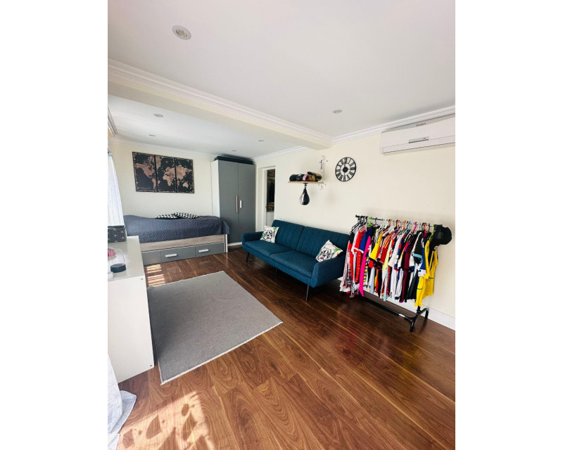 Three additional bedrooms and one bathroom. Two of the bedrooms are particularly spacious and bright. From this level, there is access to two private terraces overlooking the garden — ideal for morning coffee or peaceful sunset moments.