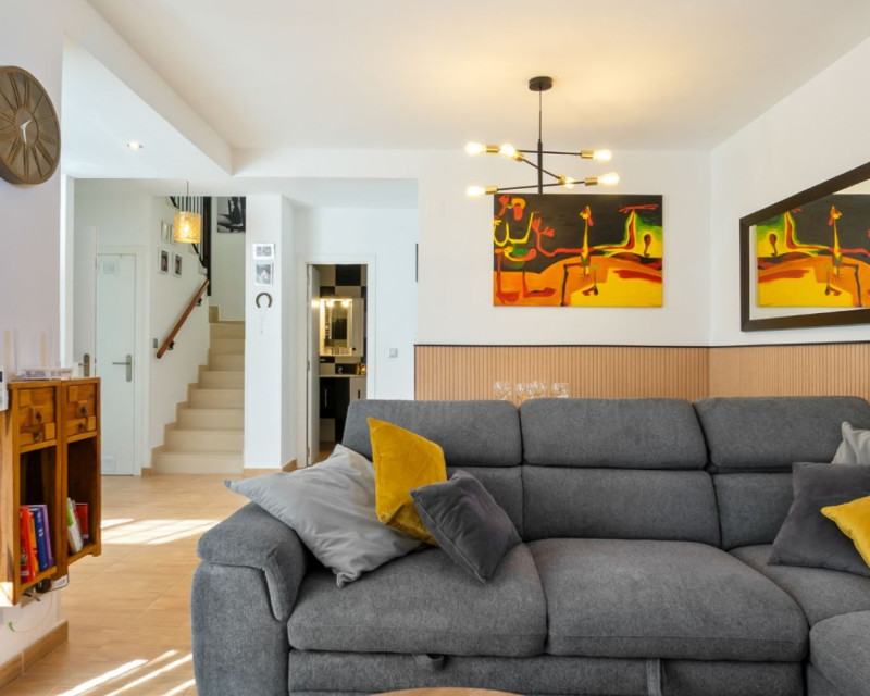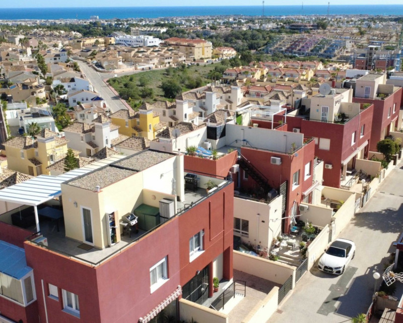 Welcome to this charming 3-bedroom, 2-bathroom townhouse located in the highly sought-after area of Villamartín, on the beautiful Costa Blanca. This property offers a perfect combination of comfort, outdoor living, and stunning views — ideal as a permanent residence, holiday home, or investment property. On the ground floor, you’ll find a bright and welcoming living area with dining space, a fully equipped kitchen, one bathroom, and direct access to a spacious private terrace — perfect for outdoor dining, relaxing, or enjoying the Mediterranean climate all year round. Upstairs features three well-proportioned bedrooms and an additional bathroom. From here, you have access to a private balcony, while the highlight of the home is the impressive roof terrace (solarium) offering spectacular sea views — the perfect place to unwind, sunbathe, or entertain guests. The property is partly renovated, giving it a fresh and modern touch while still offering potential to personalise further. It is sold fully furnished, making it completely ready to move into or rent out immediately. Residents also benefit from access to a beautiful communal pool area, ideal for cooling off during the warm Spanish summers. Located close to golf courses, restaurants, shops, and just a short drive to the beaches of Orihuela Costa, this townhouse offers excellent value in one of the most popular areas on the Costa Blanca. A fantastic opportunity in Villamartín — viewings highly recommended.