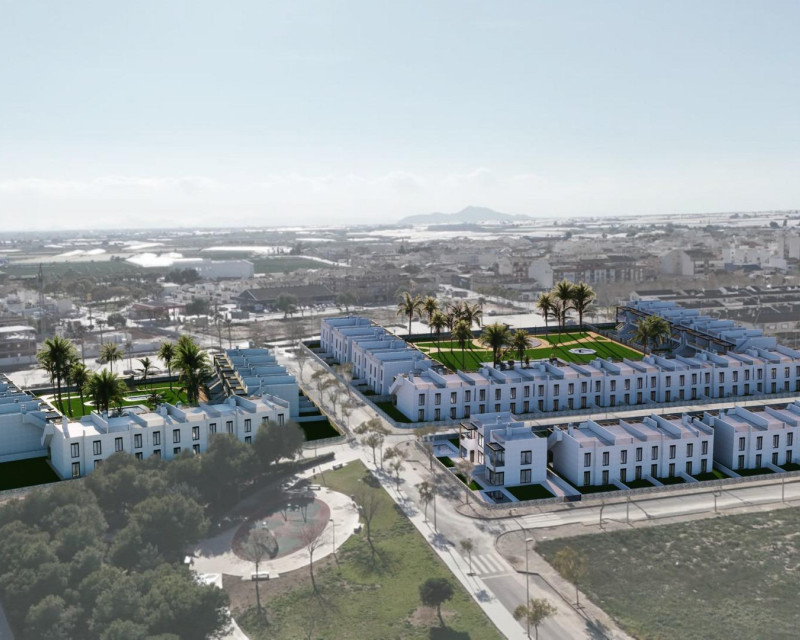 New Build Bungalows with Garden or Solarium Near the Beach in Pilar de la Horadada Modern Mediterranean Homes Designed for Comfort Discover this exclusive new build residential complex in Pilar de la Horadada, offering contemporary bungalows located less than 2 km from the beach. Designed to combine comfort, style and functionality, these homes are ideal for year round living, holidays or as a smart investment on the Costa Blanca. The development offers a choice between ground floor bungalows with private gardens and top floor bungalows with private rooftop solariums. Each property is thoughtfully designed to maximize outdoor living and make the most of the Mediterranean climate. Spacious 2 Bedroom Properties with High Quality Finishes Each bungalow features 2 bedrooms and 2 bathrooms, one of them ensuite, along with a private parking space in the underground garage. The homes are built with quality materials and modern finishes that ensure energy efficiency and durability. Key features include: Preinstallation for ducted air conditioning Aluminium exterior carpentry with double glazing and motorized shutters Security entrance door for peace of mind Aerothermal system for efficient hot water production Built in wardrobes in all bedrooms Fully equipped bathrooms with furniture and shower screens These specifications provide a comfortable and practical home suitable for all seasons. Private Community with Pool and Landscaped Gardens The residential complex is private and secure, with beautifully landscaped communal gardens and a large communal swimming pool. This creates a pleasant and relaxing environment where residents can unwind and enjoy the excellent climate. Located just outside the town center, the development allows residents to walk to supermarkets, restaurants, bars, schools and essential services without needing a car. Excellent Location Close to Beaches and Services Pilar de la Horadada is a charming Spanish town in the southernmost part of the Costa Blanca, known for its lively atmosphere, local shops, traditional squares and friendly community. The sandy beaches of Torre de la Horadada Beach and Mil Palmeras Beach are just 2 km away, offering fine golden sand, a scenic promenade and a marina. The area is also ideal for cycling, walking and outdoor sports. Distances to Key Points of Interest Lo Romero Golf 5 km La Zenia Boulevard 15 km Murcia Corvera Airport 40 km Alicante Airport 55 km Torre de la Horadada Marina 3 km Reserve Your New Home Today Do not miss this opportunity to own a brand new bungalow near the beach in one of the most desirable areas of the Costa Blanca. Contact us today for more information and to arrange a visit.