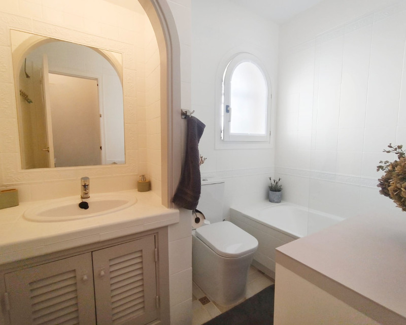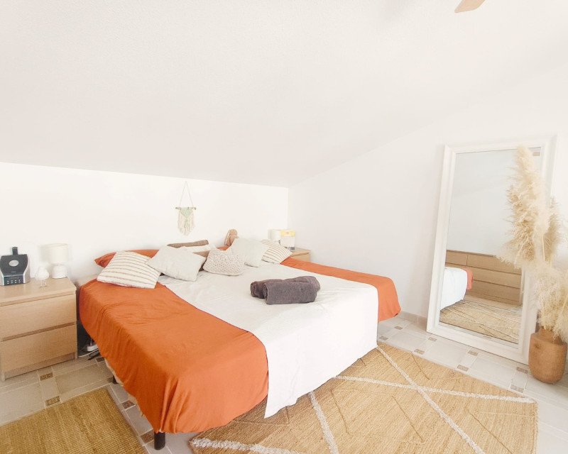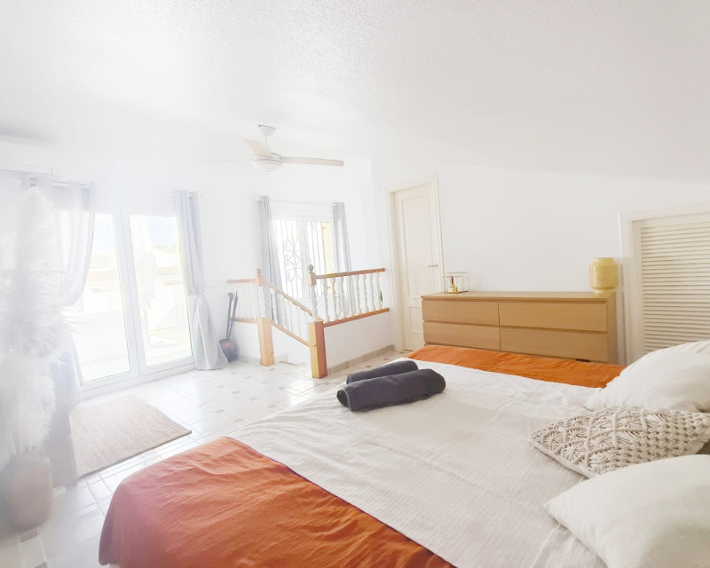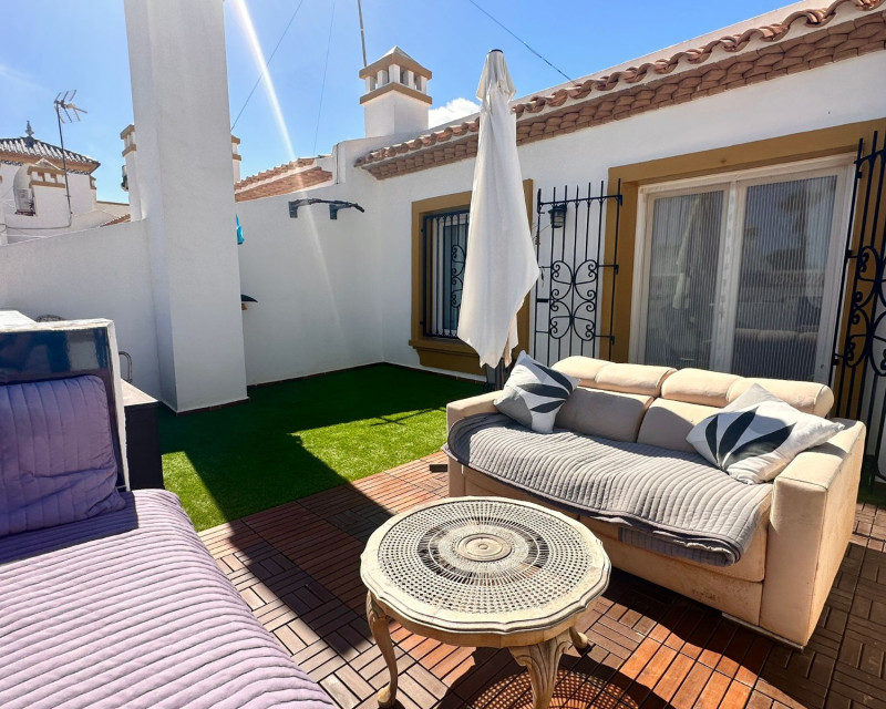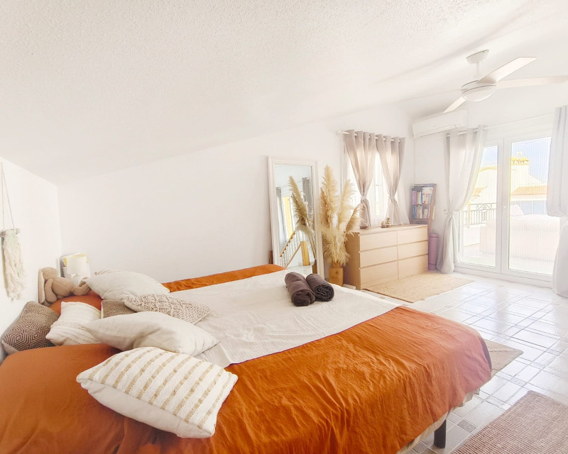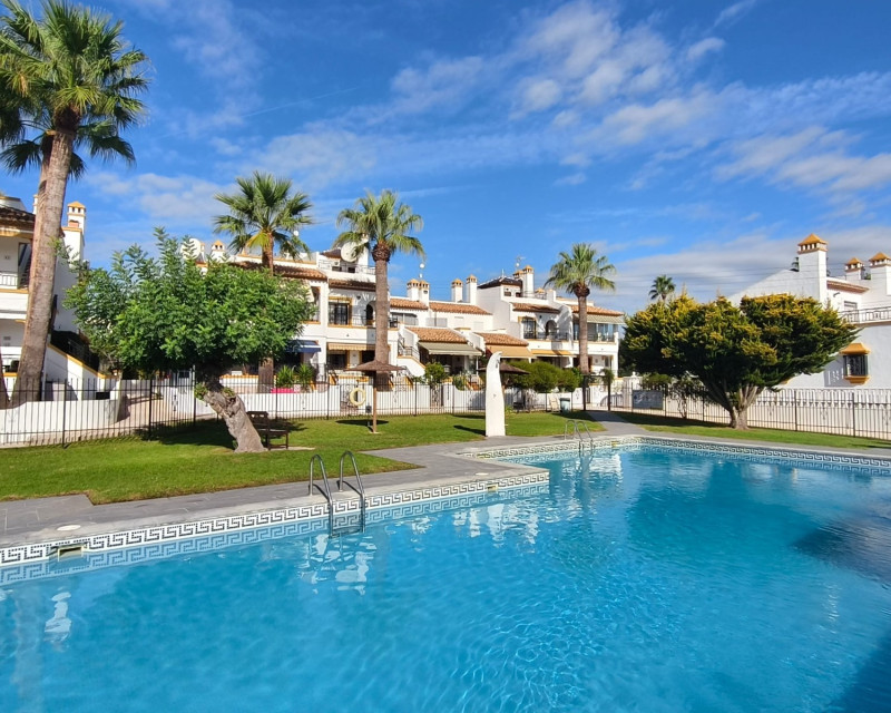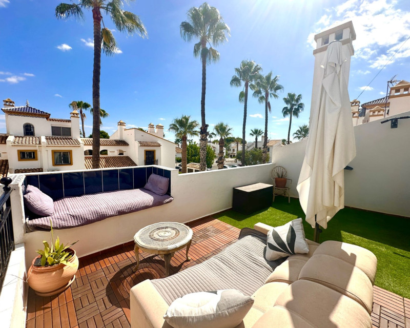 Dream home ready to move into in Villamartín, Orihuela Costa! Imagine enjoying the sun all day long on a large plot with double exposure to the east and west, in a secure condominium with a communal swimming pool and parking. This Spanish terraced house, which is sold furnished with appliances, offers 3 bedrooms, 2 bathrooms, air conditioning and tasteful décor... All you have to do is move in! Just 2 minutes from shops, 2 minutes from Villamartín golf course and less than 10 minutes from La Zenia beach, it offers the perfect balance between tranquillity and convenience. Comfort, charm and an idyllic setting: your new life starts here! For more information or to arrange a viewing, please do not hesitate to contact us.