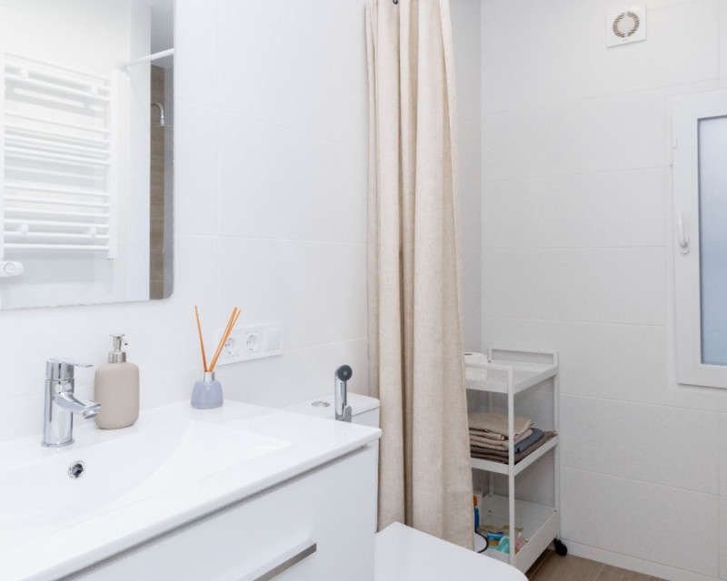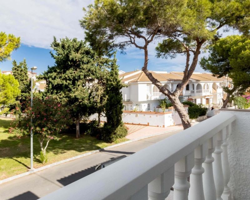 Welcome to this fully renovated townhouse located in the very heart of La Zenia, set directly within a peaceful green park.The property is situated just 350 metres from La Zenia Beach and 950 metres from the famous La Zenia Boulevard shopping centre. This Spanish-style home has been completely renovated to a high standard of quality and taste. Inside you will find a spacious living room and a brand-new fully equipped kitchen including a drinking water filtration system.The home offers three bedrooms with beautiful park views and three bathrooms, including one located in the courtyard together with a laundry area. All windows feature SOLAR glazing for improved indoor climate. The property includes alarm system, reinforced entrance doors, air conditioning, internet and Smart TV.High-quality vinyl flooring with underfloor heating is installed on the ground floor and in the bathrooms.Electrical installation and plumbing have been fully renewed. Outdoor areas include a cosy courtyard with barbecue area, terrace and patio.A private covered parking space and storage room are included. The property is sold fully furnished, offering a unique opportunity to enjoy coastal living with modern comfort.A top location combining central infrastructure, walking distance to the best beaches and remarkable peace and tranquillity. Do not miss the opportunity to enjoy life even more. Key FeaturesTownhouse · 2 floorsBuilt area: approx. 80 m²Plot: 50 m²3 bedrooms · 3 bathroomsTerrace & balconyFully renovatedFitted wardrobesStorage roomAir conditioningCovered parking includedSold furnished