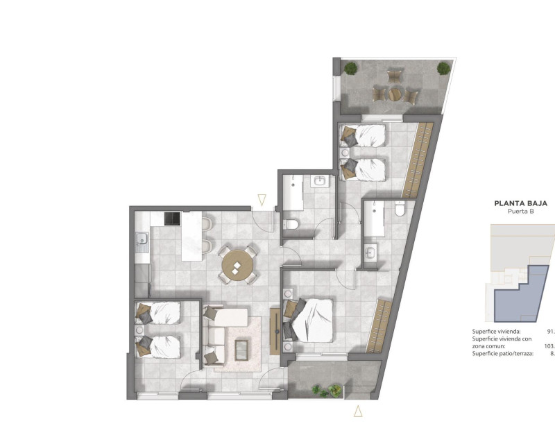 New Development Apartments in Central Guardamar del Segura, Costa Blanca Prime Location Near the Beach Discover this exceptional new-build residential complex located in the heart of Guardamar del Segura, a charming coastal town renowned for its natural dunes, pine forests, and golden sandy beaches. Ideally situated just 1 km from the beach and within walking distance to shops, restaurants, supermarkets, and leisure services, this project offers the perfect balance of convenience and Mediterranean lifestyle. Stylish Homes Designed for Comfort This modern development consists of 2 and 3-bedroom apartments with 2 bathrooms (including one en-suite). Buyers can choose between ground-floor units with terrace and patio, middle-floor apartments with terrace, or penthouses with private solarium, ideal for enjoying the sun and sea breeze year-round. Each property includes an open-plan kitchen integrated with a spacious living room, fitted wardrobes, and a private rooftop storage room. Optional parking spaces on the ground floor are available for added convenience. Premium Qualities and Energy Efficiency Designed to offer modern comfort and efficiency, the homes include high-quality finishes: Fully equipped bathrooms with vanity unit, mirror, and screens Security reinforced entrance door Aerothermal hot-water system Double-glazed windows with thermal break Elevator with access to all floors Beautiful Communal Spaces The complex features attractive green areas, a community swimming pool, and a communal rooftop solarium, providing residents with relaxing outdoor spaces in the sun. Enjoy the Best of Guardamar Guardamar del Segura offers 11 km of natural beaches, a marina with year-round activities, sports facilities with padel, tennis, football, and an indoor heated pool, as well as parks, markets, and cultural venues. With its laid-back coastal atmosphere and full range of services, it is an ideal location for both permanent living and holiday escapes. Key distances: Beach: 1 km Alicante-Elche Airport: 20 km La Marquesa Golf: 8 km Torrevieja Marina: 14 km Guardamar Marina: 2 km Secure Your New Home in the Costa Blanca Don’t miss the opportunity to live in one of the most desirable areas of the Costa Blanca. Contact us today to schedule a visit and discover your future home in Guardamar del Segura.