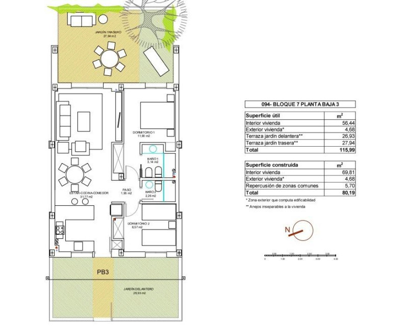 NEW BUILD RESIDENTIAL COMPLEX IN VERA New Build residential of apartments in Vera just 400m from the huge Vera beach named "El Playazo". The typologies are ground floor with two private gardens, one in each orientation, which allows you to enjoy sun or shade whenever you want depending on the time of day or the season of the year. The first floors have terraces and the penthouses have large solariums. All the apartments have extra height ceilings (2.95 m) providing a great feeling of spaciousness. The kitchen comes fully furnished and equipped integrated with the living-dining area with a bar area. The doors and fitted wardrobes are lacquered in white and the floor is made of laminated wood. The hot-cold air conditioning and the hot water are generated by a state-of-the-art DAIKIN Aerothermal device, a technology that saves up to 70% of electricity consumption compared to traditional systems. All bathrooms come with a shower instead of a bathtub, with recessed mirrors and also with a stone countertop and glass partition in the main bathroom. The blinds in the living room and master bedroom are electric, hermetically sealed and with adjustable slats. The gardens and solarium are delivered with the floors finished combining artificial grass and a beautiful paving imitating wood. Each house includes a private outdoor parking space. Each block of the promotion has an independent elevator. Both the buildings and the apartments have a series of bioclimatic architecture characteristics (orientation, insulation, windows and shutters, pergolas) that allow optimal natural regulation of ventilation, temperature and light throughout the different seasons of the year. The communal areas are made up of pedestrian squares and green areas, with a large swimming pool for adults and another for children in the central square. The entire urbanization is free of architectural barriers for the disabled. Here tranquillity and relaxation are guaranteed. Vera is one of the best naturist places in Europe, recognized for the quality and purity of their waters. It offers six kilometres of beaches (Las Marinas-Bolaga, Puerto Rey, El Playazo, Quitapellejos). Vera bordering with the famous tourist destinations such as Mojacar and the Almanzora Caves. Residential complex located about 1,5 hour drive away from Murcia - Corvera airport and about 2 hours away from Alicante airport.