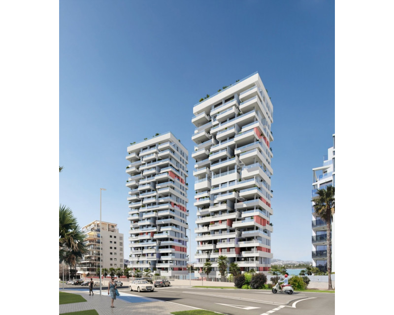 NEW BUILD APARTMENTS WITH THE SEA VIEWS IN CALPE New Build residential complex of 1, 2 and 3 bedrooms apartments with large terraces in Calpe. Two towers of 18 floors with beautiful apartments with views of the sea and the salt lake of Calpe. Complete installation of ducted air conditioning, with pump of cold and heat, by aerothermal control thermostat in living room. Large common areas with gardens, swimming pool, paddle tennis, children's area. On 11th floor of tower 1: infinity pool, sauna, gym and chill area out with sea views. Calpe, one of the towns of La Marina Alta, lies on the northern coast of the province of Alicante, surrounded by the towns of Altea, Benidorm, Teulada-Moraira, Benissa. Calpe has a wonderful mixture of old Valencian culture and modern tourist facilities. It is a great base from which to explore the local area or enjoy the many local beaches. Calpe alone has three of the most beautiful sandy beaches on the coast. Calpe also has two Sailing Clubs: Real Club Náutico de Calpe and Club Náutico de Puerto Blanco. Fishing village of Calpe now transformed into a tourist magnet, the town sits in an ideal location, easily accessed by the A7 motorway and the N332 that runs from Valencia to Alicante; its approximately 1 hour drive from the airport at Alicante and 1,5 hours to Valencias airport.