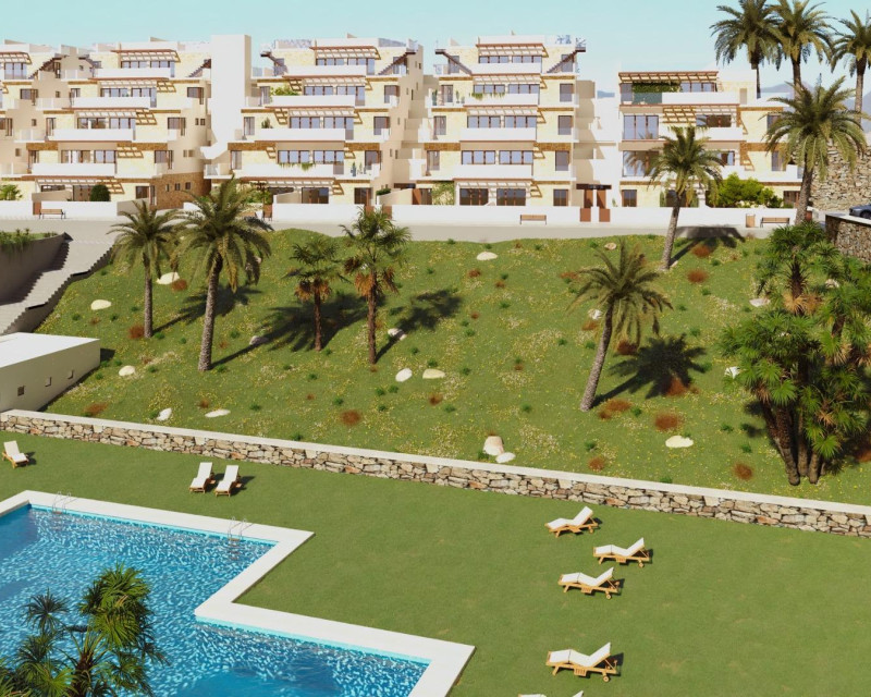 New Build Apartments with Sea Views in Vera Playa, Almería Discover this exceptional new residential development in Vera Playa, offering 27 modern apartments in its first phase. Designed to combine comfort, functionality, and spectacular Mediterranean views, this project is ideal for those seeking a home on the Costa de Almería with style and convenience. Modern Homes with Sea Views Each apartment has been thoughtfully designed to maximize natural light and outdoor living. Options include 1, 2, and 3-bedroom layouts, with ground floors featuring private gardens, middle floors with spacious terraces, and penthouses with private solariums. Thanks to the terraced design, all homes enjoy uncovered terraces with stunning views of the sea. Quality Finishes and Fully Equipped Homes Every property comes fully furnished and equipped, ready to move in. Features include: Furnished kitchen with appliances included Complete bathrooms with modern fittings Ducted air conditioning system Private parking space and storage room Exclusive Community Facilities The highlight of this residential complex is its communal swimming pool, surrounded by landscaped gardens, creating the perfect space to relax, sunbathe, and enjoy family time. Prime Location in Vera Playa Vera Playa is renowned for its long sandy beaches, relaxed lifestyle, and excellent amenities. The development is set in a quiet yet well-connected area with easy access to services and transport links. Key distances include: Beach: 700 m Desert Springs Golf Resort: 8 km Vera town centre: 5 km Garrucha marina and restaurants: 6 km Mojácar Commercial Park: 10 km Almería Airport: 85 km (approx. 1 hour) High-speed AVE train station (under construction): 3 km An Ideal Home or Investment Opportunity Whether you are looking for a permanent residence, a holiday retreat, or a secure investment, these new build apartments in Vera Playa offer excellent value in one of Almería’s most desirable coastal destinations. Make Vera Playa your new home and experience the perfect combination of modern living, sea views, and Mediterranean lifestyle. Contact us today to schedule a visit and secure your dream property on the Costa de Almería.