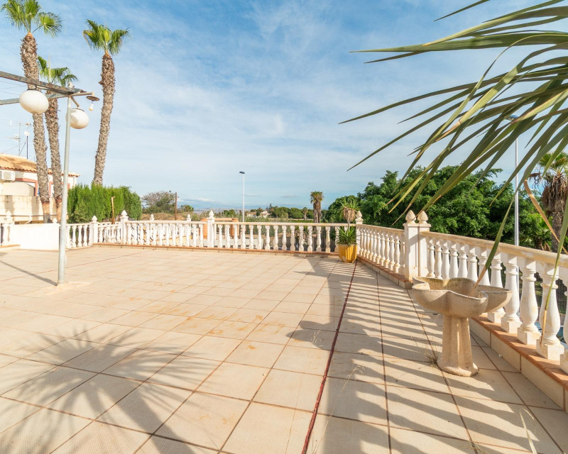 An exclusive property with great potential is presented, located on the outskirts of Torrevieja, in the prestigious Los Altos urbanization, opposite the Hotel Atlas, in an area with high tourist and residential activity throughout the year.~The house is perfect for year-round living, and the adjoining buildings have the potential to expand the living space or even generate income by increasing the usable area, for example as long-term rentals.~~The estate consists of two independent properties on a plot of approximately 440 m2, with a total built area of around 310 m2, offering multiple possibilities for large families or those seeking extra space for guests, rentals, or private use as mentioned above.~~The main house, on the ground floor, stands out for its spaciousness, character, and comfort. It features 4 large bedrooms and 2 full bathrooms, one adapted for people with disabilities or the elderly, a large living-dining room with a fireplace, and an independent kitchen. All spaces are bright and comfortable, designed for family life, with the heart of the home being a large Castilian-style living room with a traditional fireplace, adding warmth and personality to the property.~The estate has no water connection. Both properties are delivered completely empty, without furniture or appliances.~~From the main house, you have direct access to the shared courtyard, where the private pool is located, creating a perfect environment for relaxation, leisure, and outdoor gatherings.~~The second property is an independent space, previously internally connected to the main house via the central plot of the two properties, but currently separated, allowing total privacy between the two areas or easy reintegration if desired.~~This second space offers multiple uses once the necessary change-of-use works are carried out: it could be converted into a second house, guest apartment, additional family area, or independent space within the same property. It also has a terrace-solarium above this second property, ideal for enjoying summer, BBQs, or a chill-out area perfect for family and friends.~~Location~Situated in a strategic area of Los Altos, surrounded by residential developments and very close to all services, the property is just minutes from beaches, shopping centers, restaurants, golf courses, and main transport connections.~~A unique property, full of character and versatility, ideal for those seeking space, privacy, a privileged location on the Costa Blanca, and many opportunities for expansion to add value to the current property.~Price: €449,000~Taxes and purchase costs not included (according to applicable regulations). A breakdown of additional costs will be provided prior to reservation.