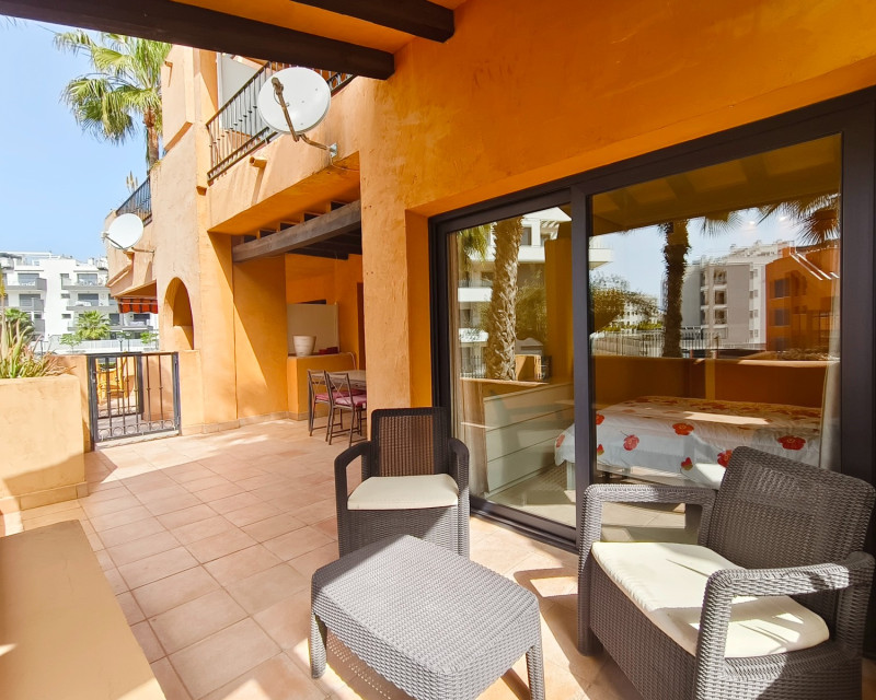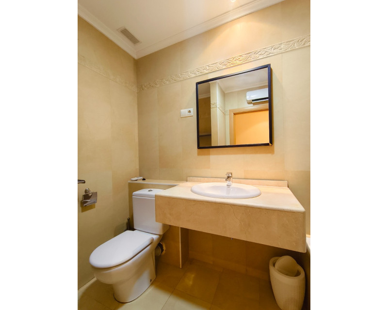 In Orihuela Costa, just a stone’s throw from Villamartín Golf Course, discover this south-facing ground-floor flat within a secure complex featuring a communal swimming pool. The flat, sold fully furnished, comprises two bedrooms, two bathrooms, central air conditioning, and two terraces, the main one of which faces south. The property also includes white goods, a parking space and a basement storage room. Don’t miss this rare opportunity, ideal as a main residence or a sunny holiday home. Contact us now for more information! Legal notice: The price shown does not include notary fees, registration fees, transfer tax (ITP) or any other costs associated with the sale. A breakdown of additional costs will be provided before you make a booking. The estate agent’s commission is INCLUDED IN THE PRICE.