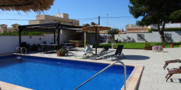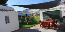 This lovely Spanish villa with 9 bedrooms, large private garden with bbq area and heated swimming pool is situated in Lomas de Cabo Roig (Orihuela Costa), Alicante. Close to La Fuente commercial centre, the new Cabo Roig commercial centre and the sandy Orihuela Costa beaches. The property boasts a cozy living/dining room, a fully equipped separate kitchen, seven double bedrooms with en-suite bathrooms and two extra single bedrooms, air conditioning throughout the property, a large garden with several terraces, children's playground, heated swimming pool and off road parking. Murcia is 33 km from the accommodation, while Torrevieja is 9 km away. The nearest airport is Murcia airport or Alicante airport. Surrounded by golf courses (Villamartin, Las Ramblas, Campoamor and Las Colinas) Great rental potential.