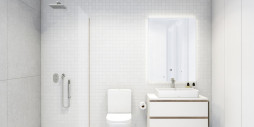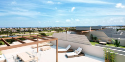 NEW BUILD BUNGALOWS IN RODA GOLF New Build residential complex located on a south-facing plot inside the prestigious Roda Golf & Beach Resort, bordering the course with its manicured fairways and feature lakes. This beautiful complex comprises 37 spacious homes surrounding a stunning pool and communal gardens. This modern residential offers a range of property types, views and orientations, according to your requirements. All bungalow apartments boast 3 double bedrooms, 2 bathrooms, a light and spacious open-plan living-dining room with American kitchen and fantastic outside space. All include off-road parking and a private storeroom. The 18 ground floor bungalows enjoy an interior terrace and garden which lead out to the communal gardens and pool area, as well as a large, gated rear terrace and garden. The 18 penthouses include a front balcony off the living room, as well as a fantastic, 90m2 private roof solarium with summer kitchen. Residential complex has been designed to maximise the use of space and light. Superbly built and including a wide range of extras, this exclusive promotion is a real oasis on Spain´s Costa Calida. At the heart of the development lies a stunning communal pool area, surrounded by Mediterranean vegetation. Enjoying sun all day long thanks to its south facing orientation, it is the perfect place to swim, relax and soak up the Murcian sunshine. As well as enjoying fantastic inside space, the ground floor properties boast a beautiful front terrace plus additional, private garden that leads out into the interior of the development with its stunning communal gardens and pool area. In addition, they offer a back terrace and enclosed garden for maximum privacy, with a gate that leads out to the exterior of the urbanisation. The duel orientation ensures that the homes enjoy sun and shade all day long. A beautifully maintained, Dave Thomas designed 18 hole course with lakes, strategically placed bunkers, undulating greens and lush Mediterranean vegetation. A private resort with 24 hour security, its own taxi rank, a stunning club house with a la carte restaurant, gym with lake views and sports area. And all this just a stroll or cycle ride away from the beaches and tranquil waters of the Mar Menor inland lagoon. This residential has a fantastic selection of golden sandy beaches on its doorstep, as well as a a wide range of watersports. Enjoy both the Mar Menor and the Mediterranean seas from this paradise on the Murcian coastline.