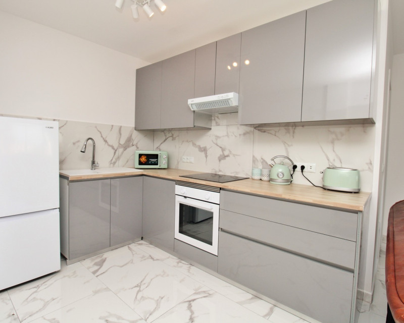 This beautifully renovated 1-bedroom apartment is situated in the highly sought-after Villamartin Plaza, within a secure gated community with lift access. The property offers use of a stunning communal pool surrounded by landscaped gardens and is located in the Villagolf residential complex. The apartment is ideally positioned, just a two-minute walk from the lively Villamartin Plaza, renowned for its array of bars, restaurants, and a supermarket, and only a three-minute walk to the internationally acclaimed Villamartin Golf Course. Recently refurbished to a high standard, the property features quality upgrades throughout, including new flooring, modern interior doors, a stylish kitchen, updated electrics, and contemporary furniture. The bright, open-plan living and dining area flows seamlessly into the modern kitchen, while the spacious double bedroom includes fitted wardrobes. The bathroom is finished with a luxurious walk-in shower, and the enclosed terrace enhances the living space, offering. A utility room provides additional practicality, housing the hot water boiler and washing machine. Fully furnished and equipped with air-conditioning, this turnkey property is perfect as a holiday home or a rental investment. Arrange a viewing today to experience this exceptional apartment for yourself.