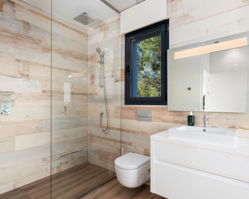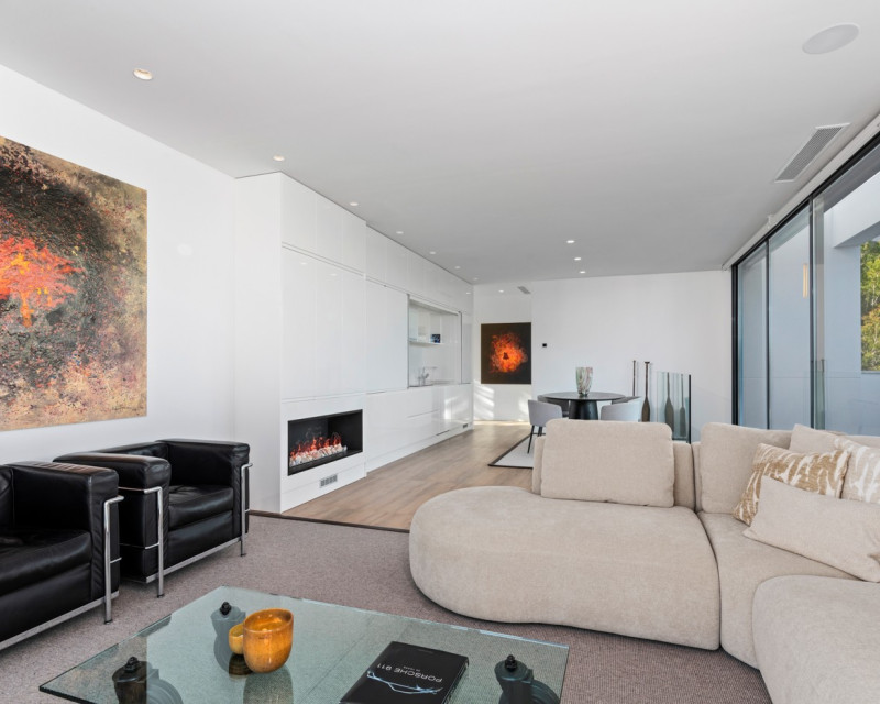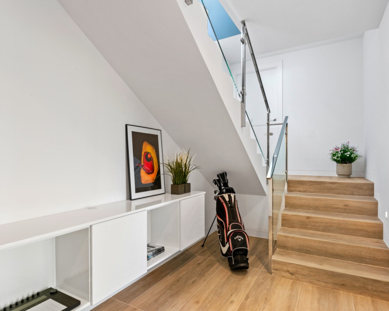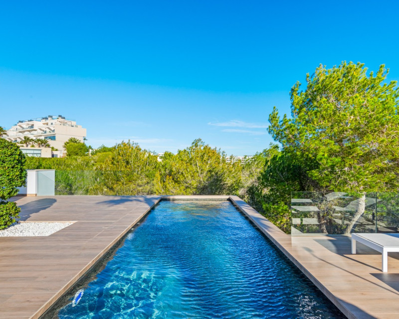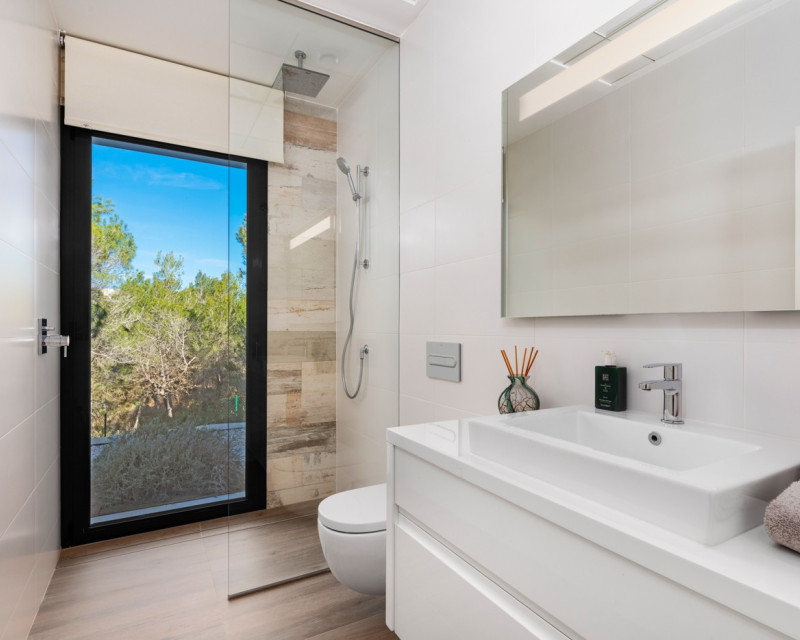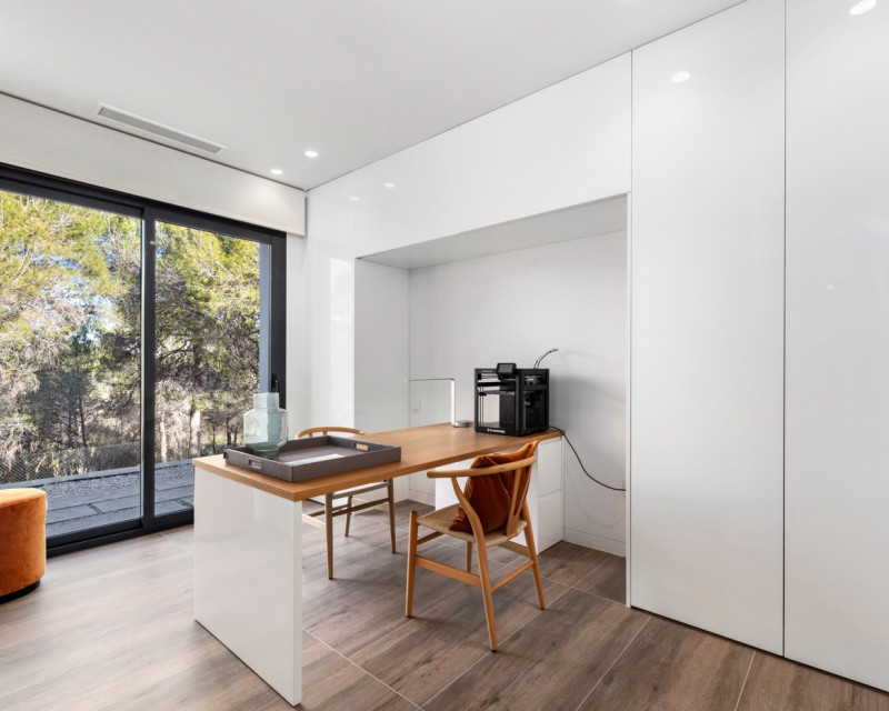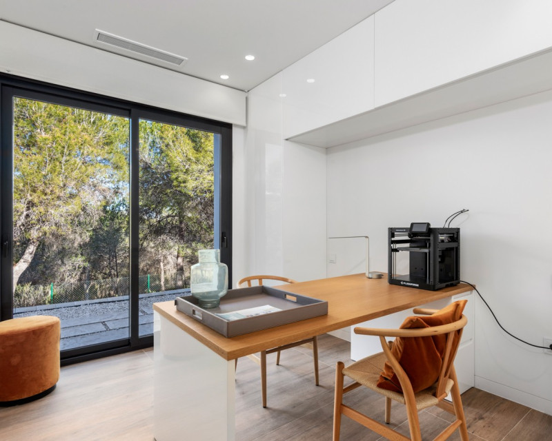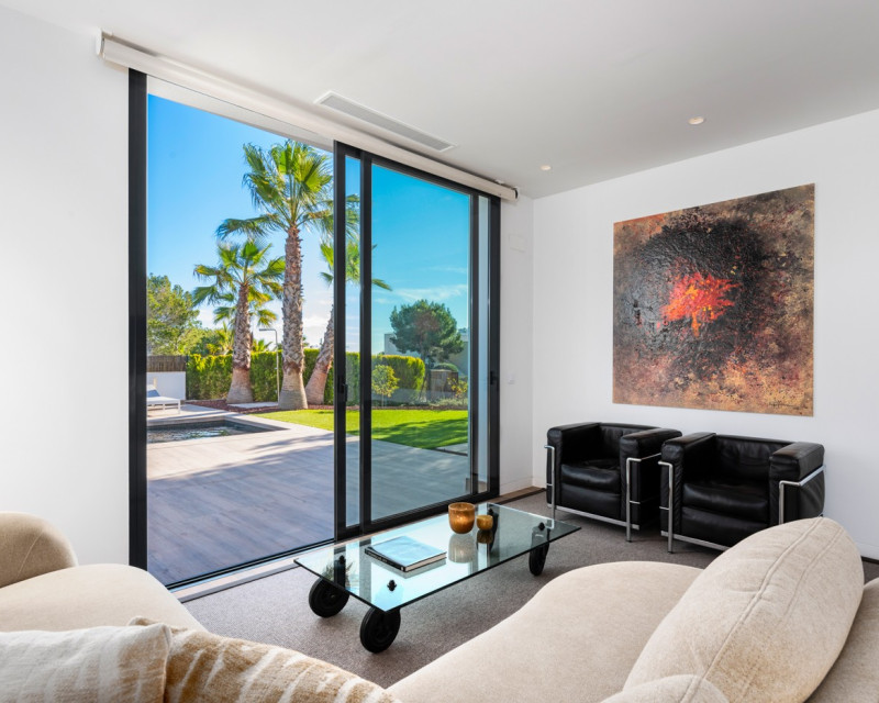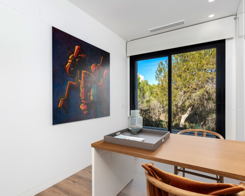Nestled within the prestigious Las Colinas Golf & Country Club, one of the most exclusive golf resorts on the Costa Blanca, this breathtaking villa offers a unique blend of luxury, comfort, and nature. With its refined architecture and high-end finishes, this home provides everything you need for a carefree and stylish life under the Spanish sun. Upon entering, you are welcomed into a spacious and bright living area, where large windows offer stunning views of the surrounding landscape. The open-plan kitchen, fully equipped with modern built-in appliances, serves as the heart of the home and seamlessly flows into the elegant living room. Here, you can relax and enjoy cozy evenings in an atmosphere of pure sophistication. The villa features four generously sized bedrooms, including a master suite on the ground floor with its own en-suite bathroom, providing extra privacy and convenience. Additionally, there is a separate guest toilet on this level. On the lower floor, you will find three more spacious bedrooms, all with breathtaking views of the natural garden. Large windows allow natural light to flood the space, bringing the outdoors inside. This floor also houses two stylish bathrooms and a separate laundry room, combining practicality with modern elegance. The outdoor spaces are just as impressive as the interior. The beautifully landscaped garden offers a tranquil oasis where you can unwind, surrounded by the natural beauty of the resort. The heated private pool invites you for a refreshing dip at any time of the day, while the spacious terraces provide the perfect setting for long summer evenings of relaxation and entertainment. This villa is equipped with the latest technology, including an advanced home automation system, allowing you to effortlessly control lighting, temperature, and security. The Airzone climate system ensures perfect indoor comfort in every room, while the automatic shutters provide additional convenience and privacy. Additionally, solar panels contribute to an energy-efficient and sustainable living experience. For your convenience, the property offers private parking for two cars, ensuring a secure and comfortable place for your vehicles. Moreover, this exclusive villa comes fully furnished with luxury furniture worth €30,000 – everything is meticulously designed and ready for you to move in. Living in Las Colinas Golf & Country Club means embracing an exceptional lifestyle. This exclusive resort not only boasts an award-winning golf course but also offers a range of luxury amenities, including sports facilities, fine dining restaurants, and a secure residential environment. Furthermore, the stunning sandy beaches of the Costa Blanca are just a short drive away. Are you looking for a dream home where luxury, nature, and exclusivity come together? Then this villa in Las Colinas is the perfect choice. Contact us today for a viewing and experience this extraordinary living opportunity.