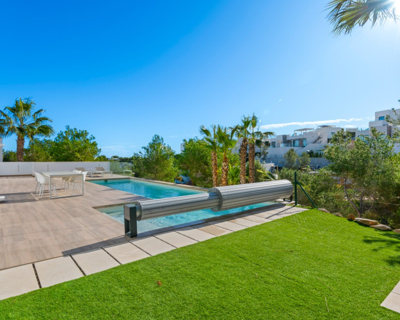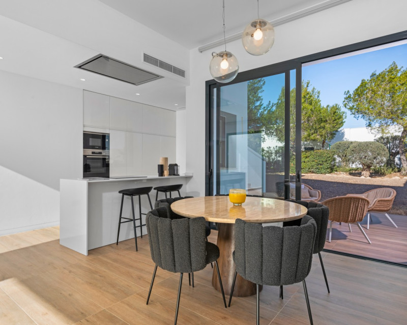Located in the prestigious Las Colinas Golf & Country Club, one of the most exclusive resorts on the Costa Blanca, this breathtaking villa offers the perfect blend of modern design, high-end finishes, and ultimate living comfort. Designed to maximize enjoyment of the sun and nature, the villa features a southeast orientation and expansive windows that provide panoramic views of the lush surroundings. Upon entering, you are welcomed into a spacious and bright living area, where elegance and functionality blend seamlessly. The open kitchen, equipped with high-quality built-in appliances, flows effortlessly into the stylish living room—a perfect space to unwind in luxury or entertain guests in a sophisticated setting. Villa Layout The villa boasts an impressive master suite on the ground floor, complete with a spacious walk-in dressing room and a luxurious en-suite bathroom. Additionally, this level features two extra bedrooms, sharing a modern bathroom. Each of these rooms offers peace and privacy, with direct access to the outdoor spaces and stunning natural views. In the lower level, you will find an exclusive studio, ideal as a guest retreat or for added privacy. The studio includes a spacious bedroom, a stylish bathroom, and a private wellness area—a sanctuary where you can fully relax and recharge. Outdoor Living & Technology The southeast-facing garden is designed for ultimate outdoor enjoyment. The heated private pool invites you for a refreshing swim any time of the year, while the expansive terraces provide the perfect setting for long summer evenings. This villa is equipped with the latest modern technologies, including a smart home automation system, allowing you to easily control lighting, climate, and security. The Airzone climate control system ensures perfect indoor comfort in every room, while the automatic shutters provide extra convenience and privacy. Additionally, solar panels make this home more energy-efficient and sustainable. For your convenience, the villa offers a private parking area for two cars, ensuring a safe and comfortable space for your vehicles. Moreover, the property is fully furnished, including luxurious furniture worth €30,000—every detail is meticulously finished and ready for immediate move-in. Living in Las Colinas Golf & Country Club means enjoying a top-tier lifestyle. In addition to its award-winning golf course, the resort offers various sports facilities, fine dining restaurants, and a serene, secure environment. Furthermore, the stunning sandy beaches of the Costa Blanca are just a short drive away, allowing you to experience the best of both worlds—tranquility and exclusivity, with the Mediterranean Sea within easy reach. Are you looking for a luxurious villa with space, privacy, and an exceptional location? Contact us today to schedule a viewing and experience this unique living opportunity for yourself!