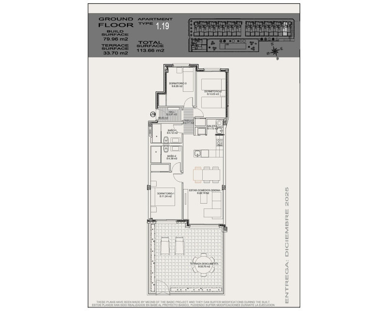 New Residential Development in Torrevieja, Just 1 km from the Sea Modern Apartments with 2 and 3 Bedrooms Located in the vibrant Altos del Sol area of Torrevieja, this new residential development offers a variety of apartment options with 2 and 3 bedrooms. Ground-floor units come with private gardens, while top-floor units feature private solariums for exclusive outdoor relaxation. Additionally, the complex includes one townhome, catering to those looking for added space and privacy. Each unit includes an underground parking space, and storage rooms are available as an optional feature. Spacious Communal Areas and Family-Friendly Amenities The residential complex is thoughtfully designed with ample communal spaces, featuring landscaped gardens that create a peaceful environment. Families can enjoy a large community swimming pool with a dedicated children’s area, perfect for relaxing and socializing under the warm Mediterranean sun. The development is located around 1 km from "Playa de Los Locos," offering convenient beach access for residents. Top-Quality Finishes and Energy-Efficient Features These homes stand out for their high-quality finishes and attention to detail. Each unit is equipped with a 600W photovoltaic solar panel system, providing an eco-friendly energy solution. Additional premium features include built-in barbecues on the solariums, armored front doors, built-in wardrobes with interior fittings, bathroom furniture with shower screens, and underfloor heating in bathrooms, ensuring comfort and style in every corner. Ideal Location Near Services and Attractions This development is situated close to all essential services, making it a convenient location for both permanent residents and holiday home seekers. Altos del Sol is known for its well-connected area with local shops, dining options, and entertainment venues within walking distance. The Alicante-Elche Airport is a 45-minute drive (43 km), while the Habaneras Shopping Center is just 3 km away, providing a comprehensive shopping experience. Experience Torrevieja’s Mediterranean Lifestyle Torrevieja, located in southern Alicante, offers a quintessential Mediterranean experience. With over 300 days of sunshine per year and an annual average temperature of 20ºC, residents can enjoy beautiful weather year-round. The city is celebrated for its rich gastronomy, featuring fresh ingredients from both the sea and local farms. Additionally, Torrevieja boasts scenic beaches, promenades, museums, and numerous activities suitable for families with children, ensuring a lifestyle filled with leisure and relaxation. Come Explore Torrevieja Whether you’re looking for a vibrant seaside community or a peaceful retreat, this development offers a unique opportunity to enjoy the best of Torrevieja’s coastal charm. Experience everything this beautiful city has to offer, from its warm climate to its rich cultural and culinary heritage.