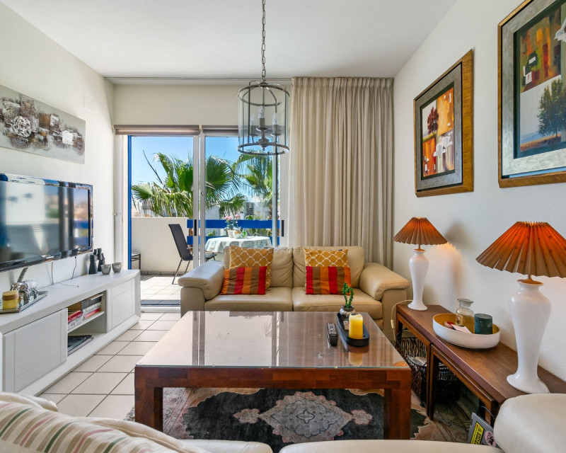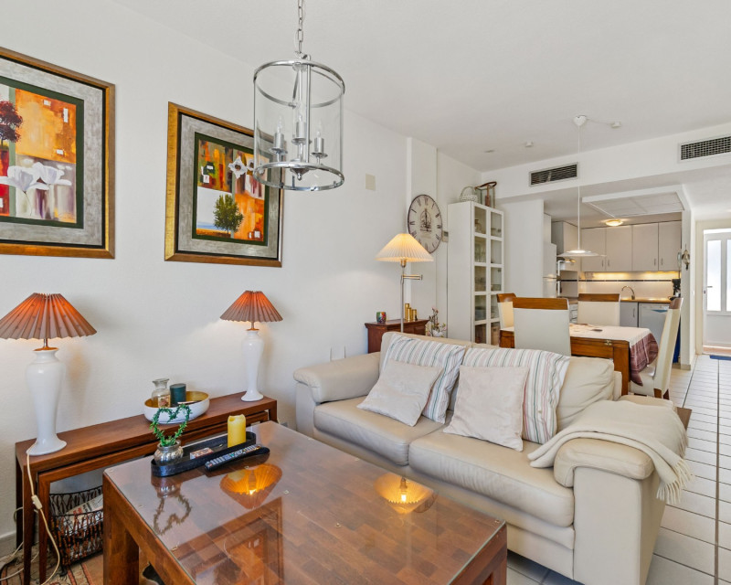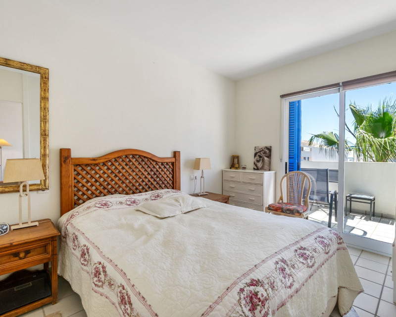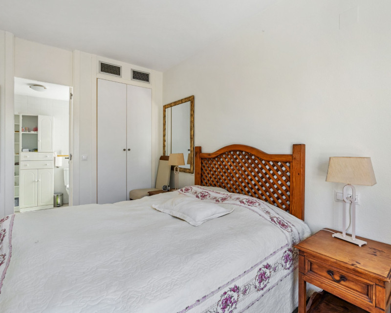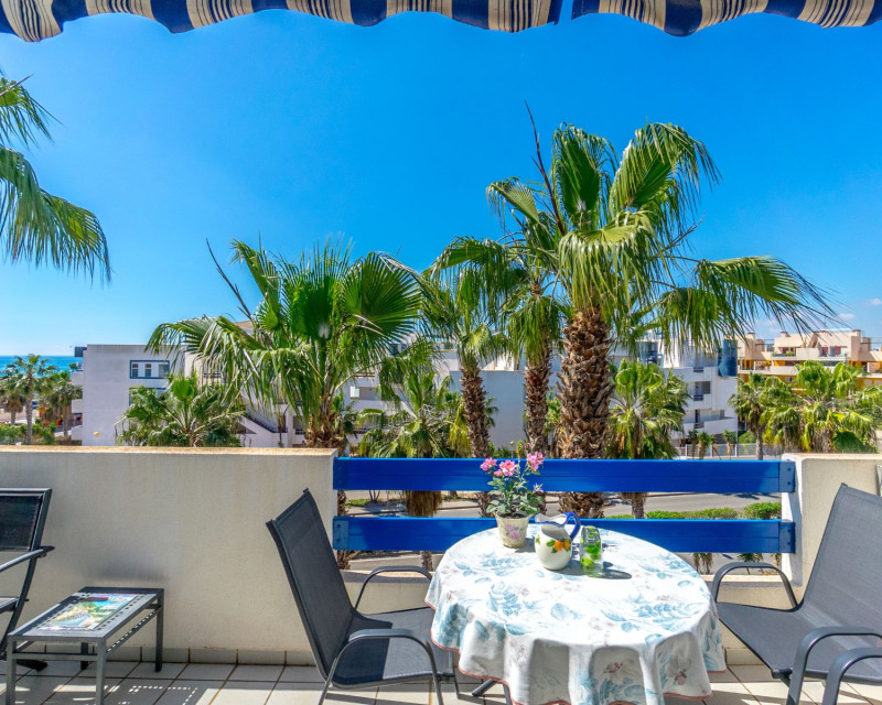 Discover this beautifully presented two-bedroom penthouse with sea views in the sought-after gated complex of La Calma, located in the heart of Playa Flamenca, on the Orihuela Costa.