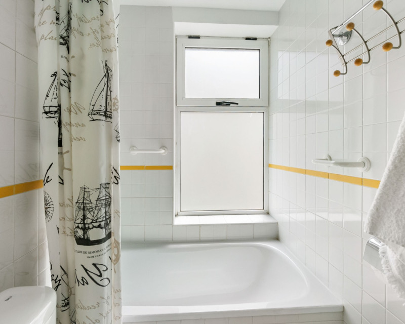 This South facing top-floor apartment boasts a bright and airy living area with an open-plan kitchen, two generously sized double bedrooms – each with its own en-suite bathroom – and a private terrace offering lovely views of the Mediterranean Sea.