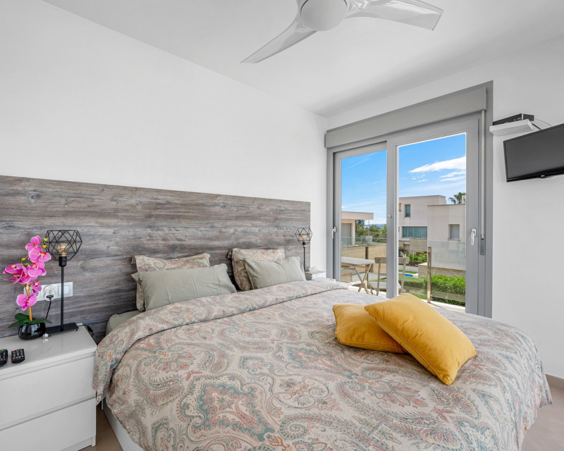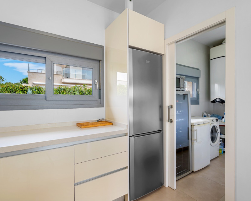 This recently refreshed villa offers everything you’re looking for in a comfortable and stylish home under the sun. The property features 3 spacious bedrooms and 2 modern bathrooms, one of which includes a separate laundry area. The bright and spacious living room flows seamlessly into the open kitchen, which is equipped with additional built-in cabinets along the entire wall – perfect for extra storage and a sleek finish. The entire interior has been recently repainted and regrouted, making the home move-in ready. Enjoy outdoor living all year round thanks to the heated private pool, surrounded by a beautifully landscaped garden with real grass and decorative plants. A high-quality 12m² wooden garden house provides extra storage or can serve as a hobby space. A unique feature of this home is the osmosis water system that provides purified water throughout the entire house – a real added value for comfort and health. In addition, all windows are extra secured for your peace of mind. The location is ideal: just a 5-minute walk to the golf course and the cozy clubhouse. Whether you're an avid golfer or simply looking for peace and luxury close to all amenities – this villa has it all.