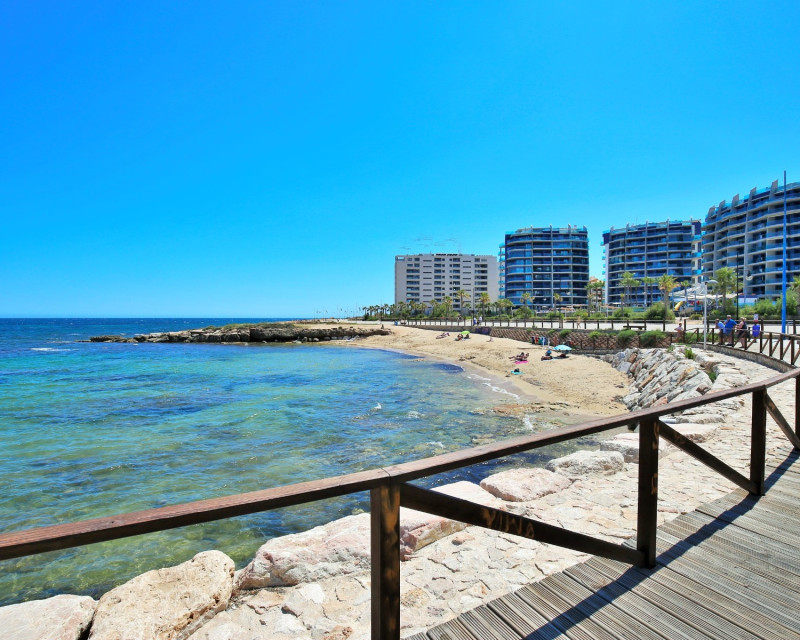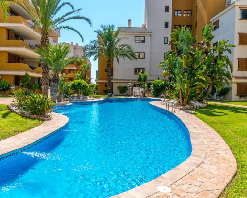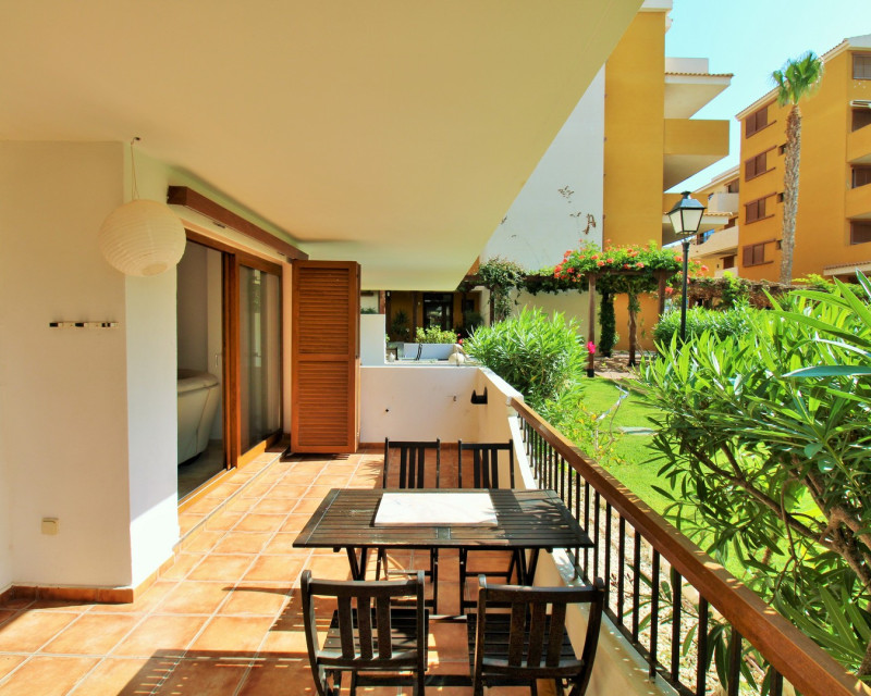 This stylish ground-floor apartment, offering two bedrooms and two bathrooms, is situated in the highly regarded La Entrada development in Punta Prima—a popular coastal spot known for its laid-back charm and excellent local amenities. Ideally located within easy walking distance of numerous bars, restaurants, shops, and just a short walk to the beach, it combines everyday convenience with relaxed seaside living. The property comes furnished and enjoys a superb position overlooking one of the three beautifully maintained communal pools. Inside, the apartment features a generous open-plan living space that seamlessly connects the lounge, dining area, and kitchen, creating a bright and welcoming environment. Large glass doors open onto a private balcony, offering tranquil views across the landscaped gardens and pool—an ideal place for al fresco dining or simply unwinding in the sun. The home benefits from full climate control, ensuring comfort throughout the year. There are two well-proportioned double bedrooms, each with built-in wardrobes. One of the bedrooms opens directly onto the balcony, enhancing the sense of indoor-outdoor living, while the other includes an en-suite bathroom fitted with a combined bath and shower. A second, equally stylish bathroom also offers a bath and shower, providing flexibility for families or visiting guests. La Entrada is a secure, gated community known for its peaceful atmosphere and meticulously maintained grounds. Residents have access to three communal swimming pools, including a heated option for year-round use. The lush Mediterranean-style gardens and immaculate shared spaces further enhance the property’s appeal. Whether you’re searching for a permanent home, a premium holiday retreat, or a strong investment in the Costa Blanca region, this apartment offers an ideal mix of location, comfort, and high-quality amenities.