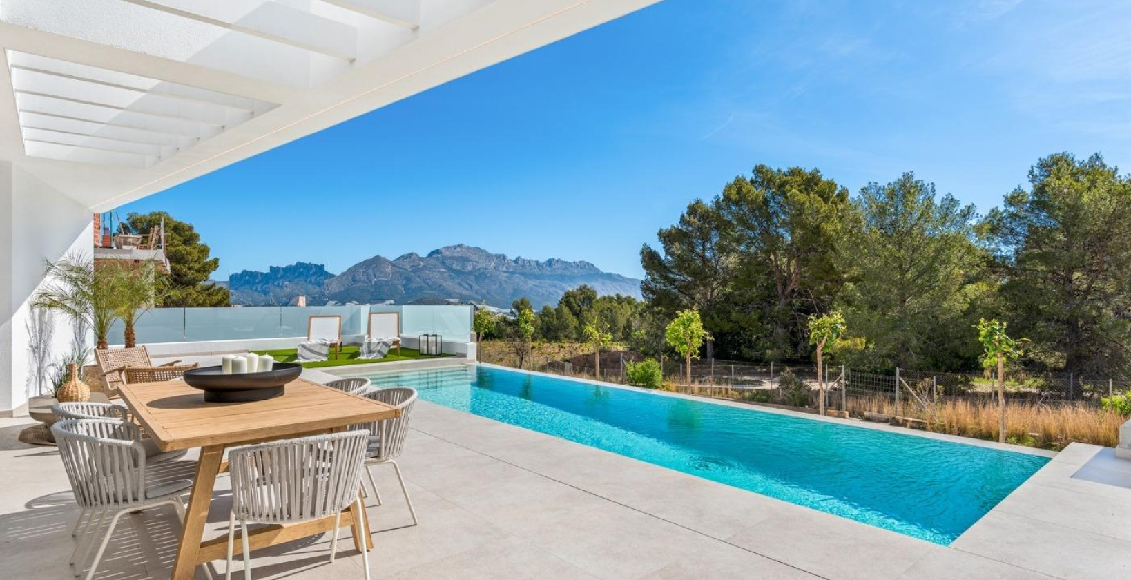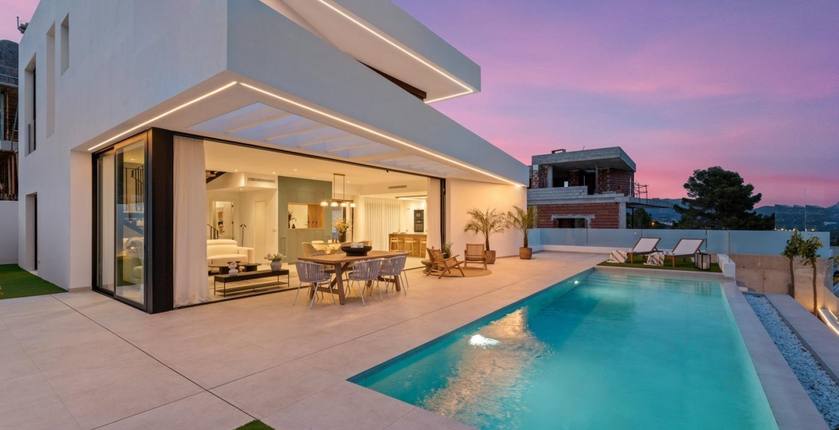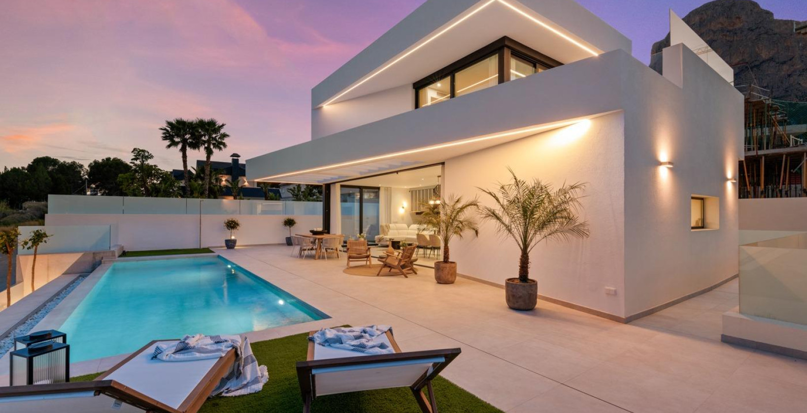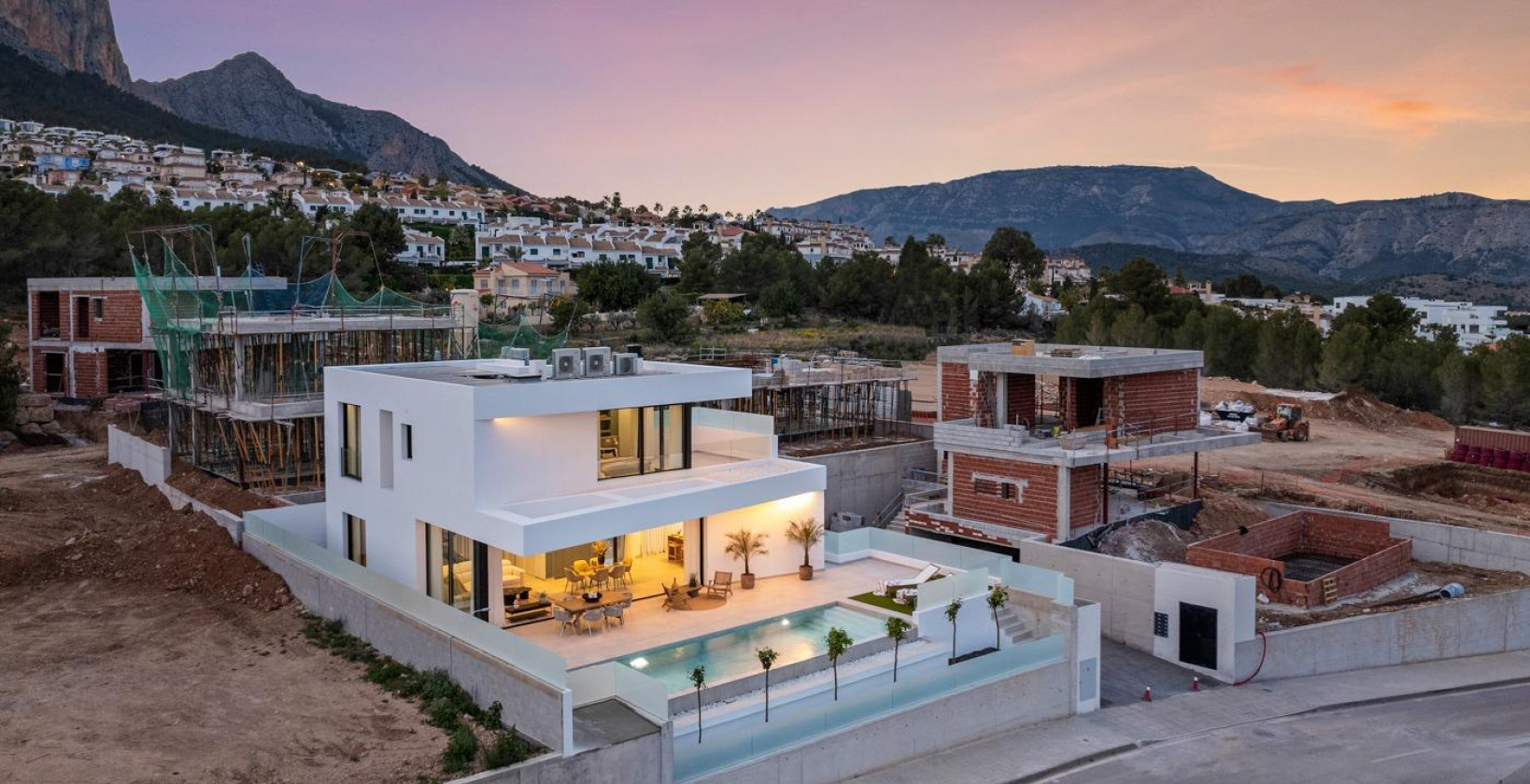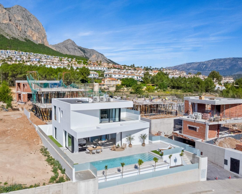 NEW BUILD VILLAS IN POLOP New Build residential of 46 villas in Polop. Modern villas build over 3 floors, has 3 bedrooms, 3 bathrooms, guest toilet, open plan modern kitchen with large living/dining room has direct access to the terrace with the pool, fitted wardrobes, basement with garage and storeroom, air conditioning, white goods. The city of Polop offers an amazing range of options for lovers of the great outdoors surrounded by nature and unparalleled peace. The municipality enjoys a Mediterranean climate with cooler temperatures and cleaner air, located less than 10 kilometres from Benidorm, Altea and their beaches. It stretches from the rivers Guadalest and Algar to the town of Villajoyosa, including the beaches of Albir and Benidorm; inland it borders Callosa and Guadalest.