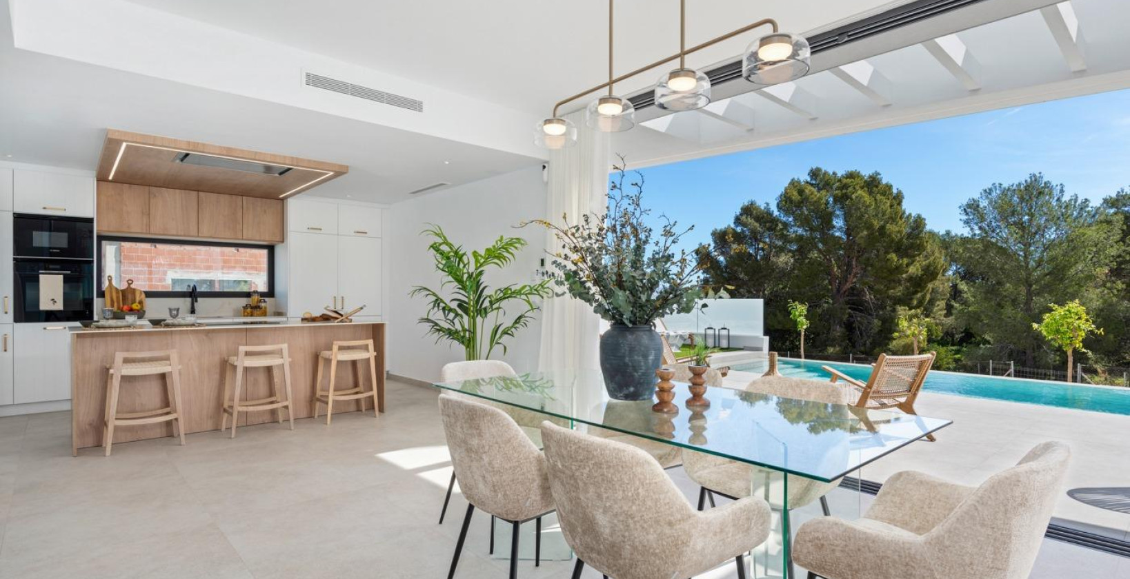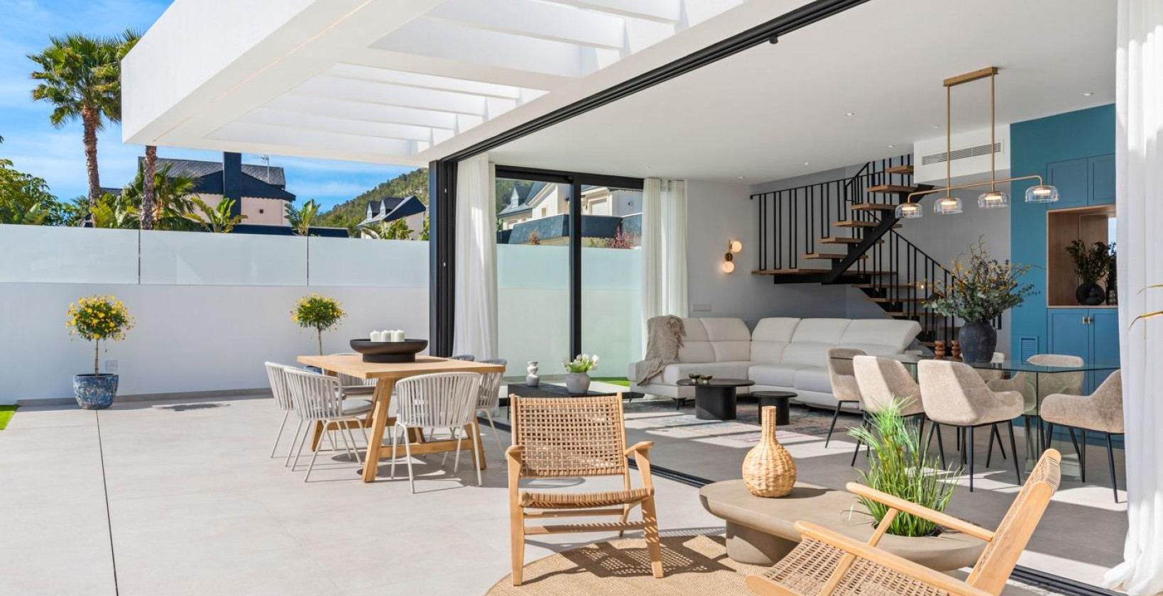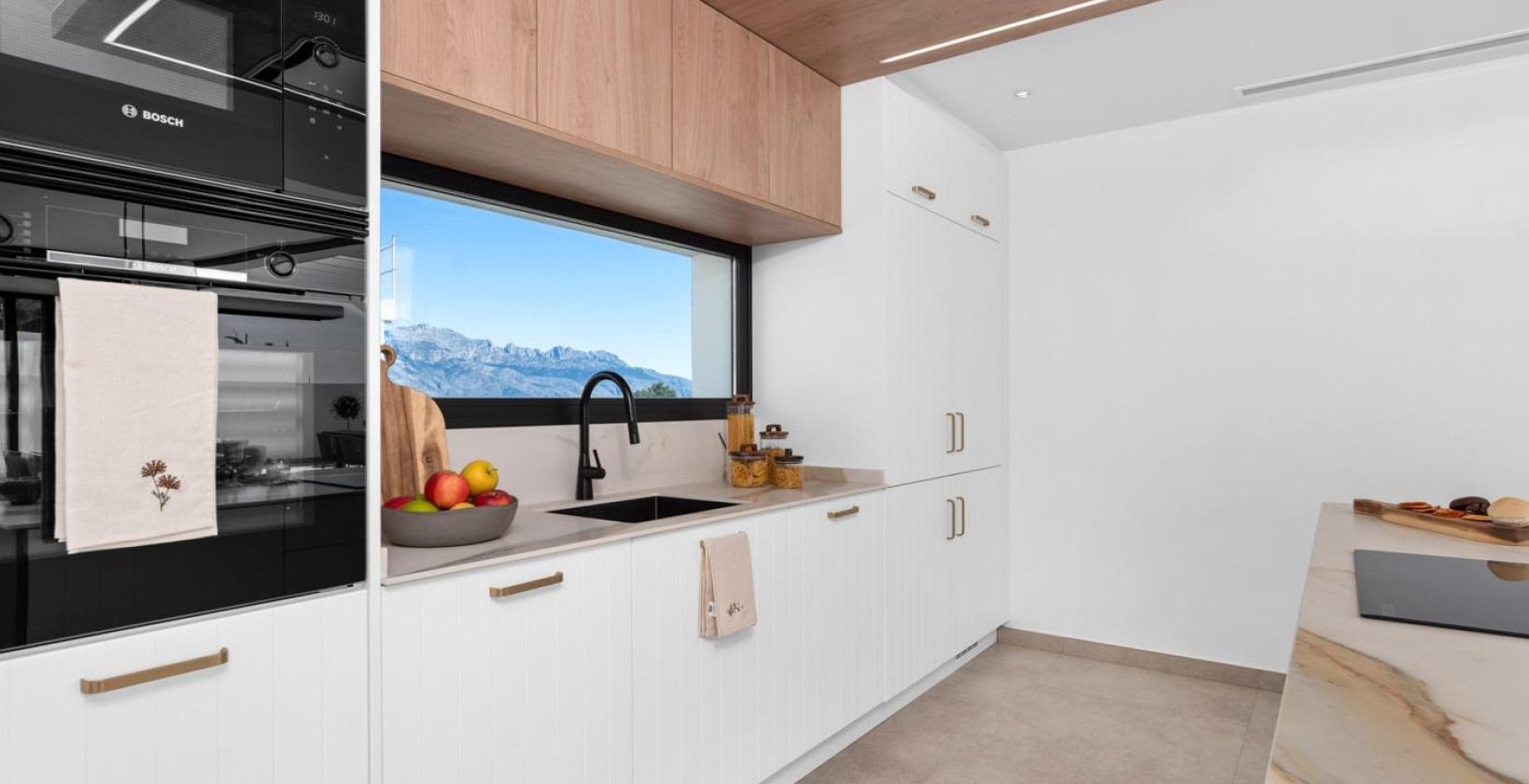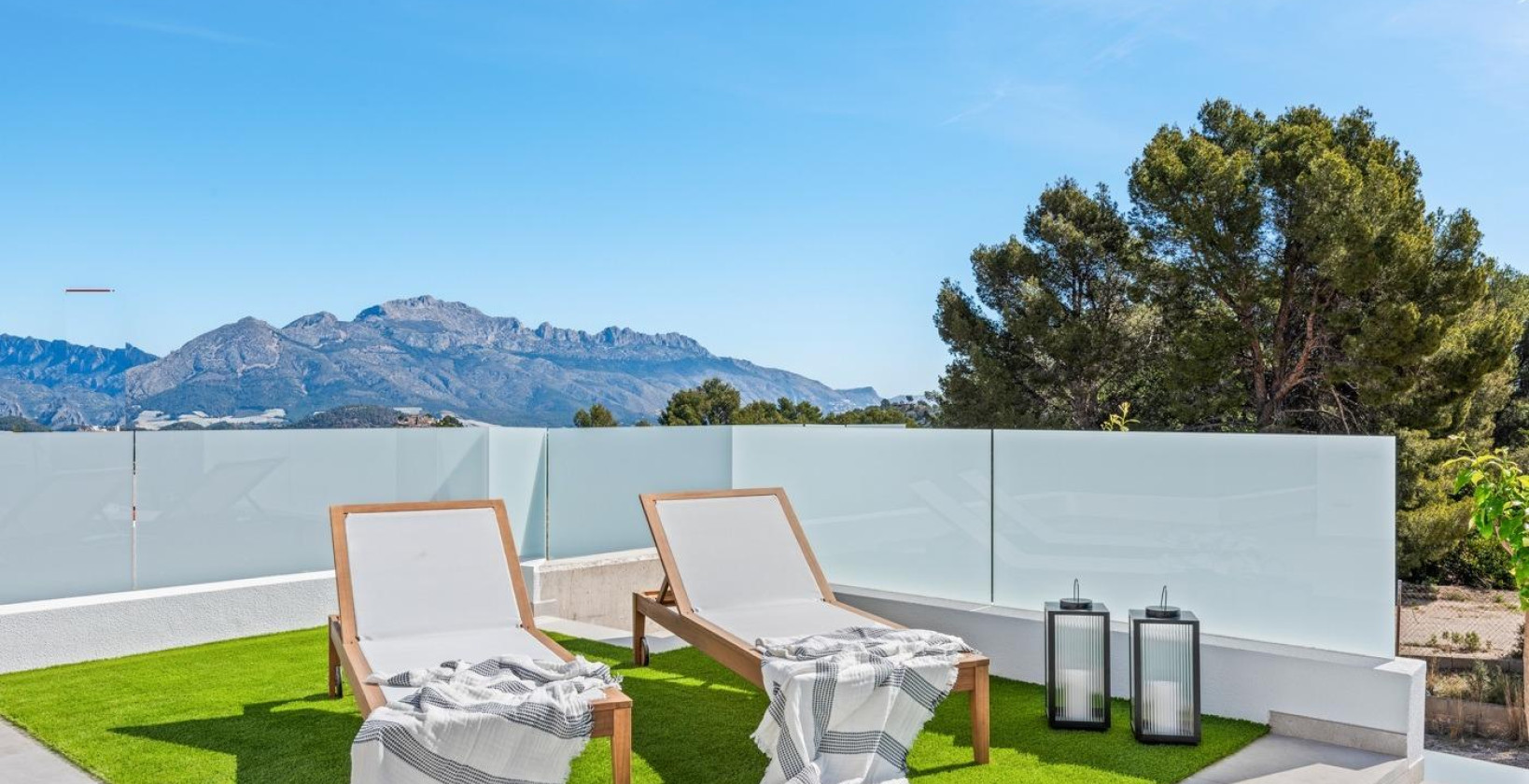 NEW BUILD VILLAS IN POLOP New Build residential of 46 villas in Polop. Modern villas build over 3 floors, has 3 bedrooms, 3 bathrooms, guest toilet, open plan modern kitchen with large living/dining room has direct access to the terrace with the pool, fitted wardrobes, basement with garage and storeroom, air conditioning, white goods. The city of Polop offers an amazing range of options for lovers of the great outdoors surrounded by nature and unparalleled peace. The municipality enjoys a Mediterranean climate with cooler temperatures and cleaner air, located less than 10 kilometres from Benidorm, Altea and their beaches. It stretches from the rivers Guadalest and Algar to the town of Villajoyosa, including the beaches of Albir and Benidorm; inland it borders Callosa and Guadalest.