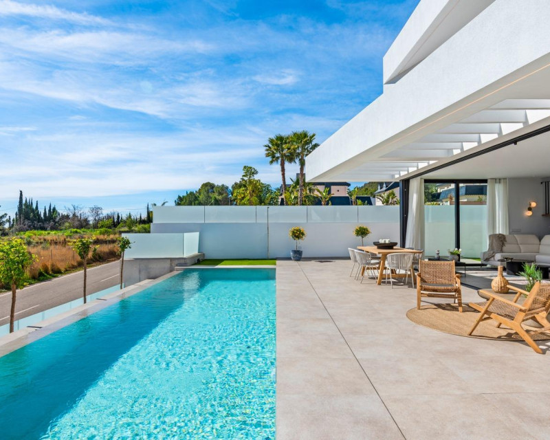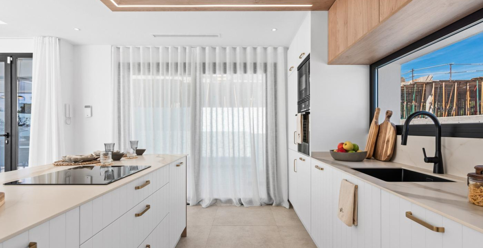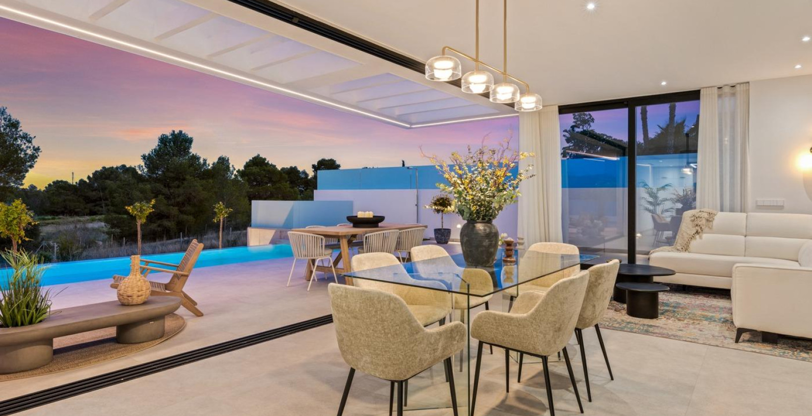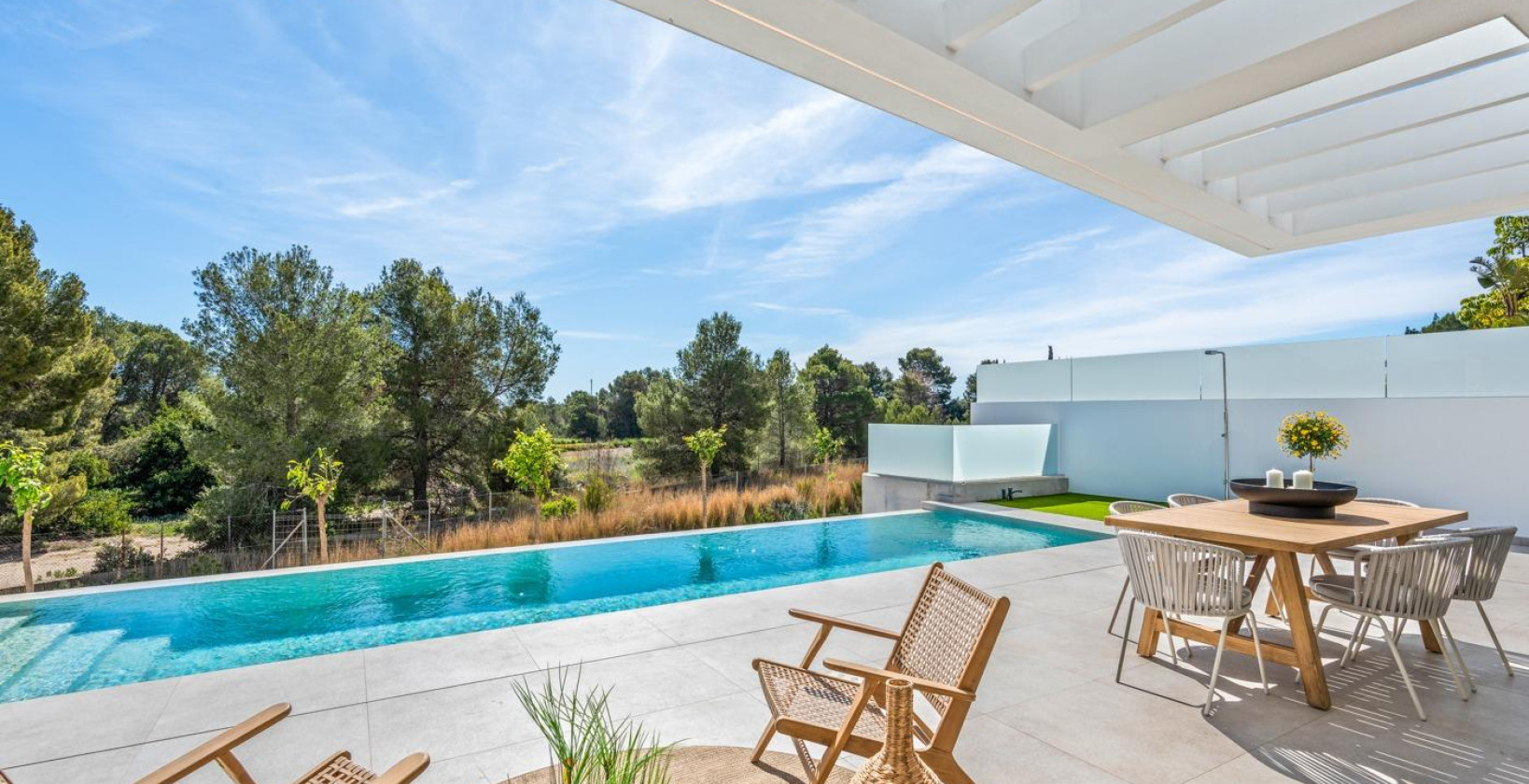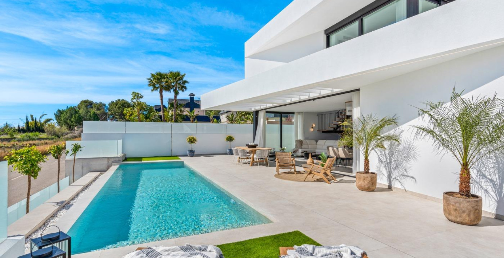 NEW BUILD VILLAS IN POLOP New Build residential of 46 villas in Polop. Modern villas build over 3 floors, has 3 bedrooms, 3 bathrooms, guest toilet, open plan modern kitchen with large living/dining room has direct access to the terrace with the pool, fitted wardrobes, basement with garage and storeroom, air conditioning, white goods. The city of Polop offers an amazing range of options for lovers of the great outdoors surrounded by nature and unparalleled peace. The municipality enjoys a Mediterranean climate with cooler temperatures and cleaner air, located less than 10 kilometres from Benidorm, Altea and their beaches. It stretches from the rivers Guadalest and Algar to the town of Villajoyosa, including the beaches of Albir and Benidorm; inland it borders Callosa and Guadalest.
