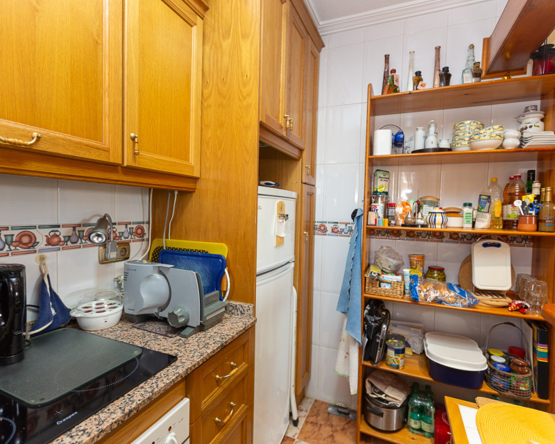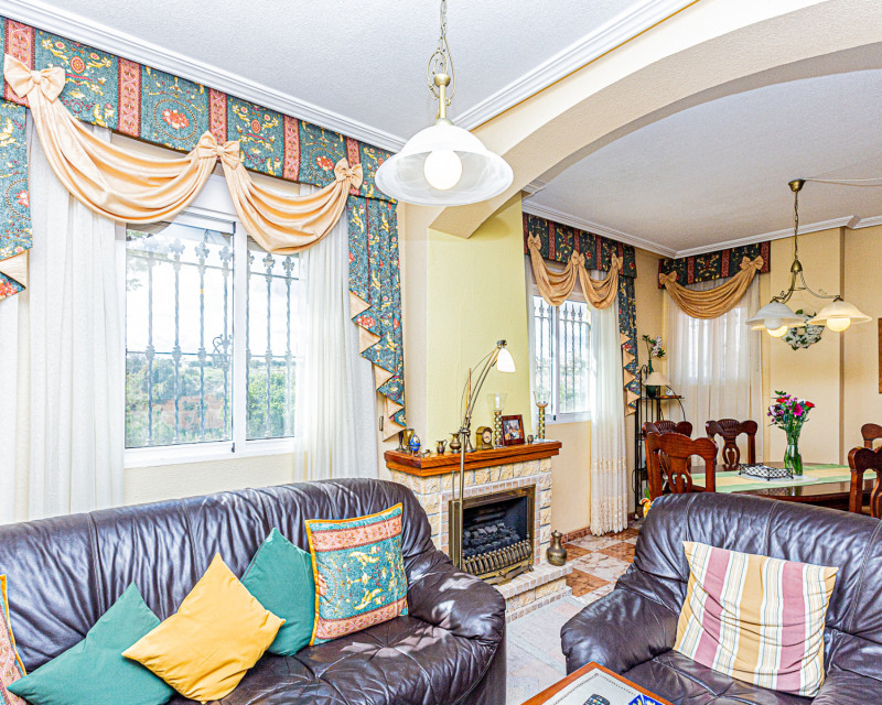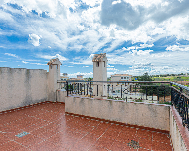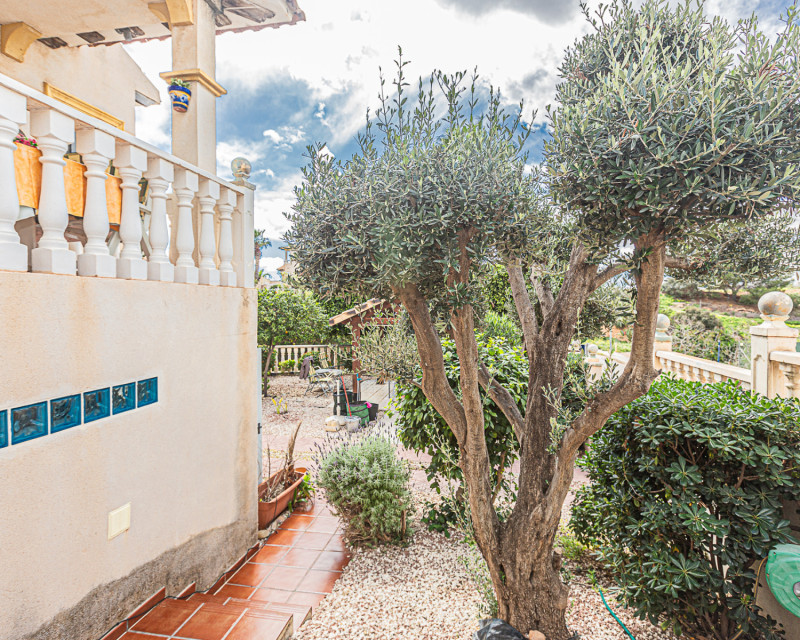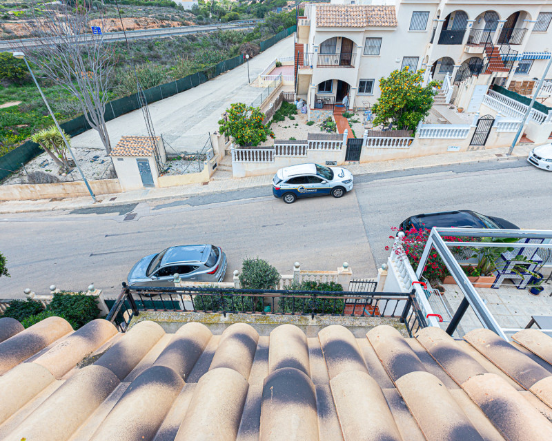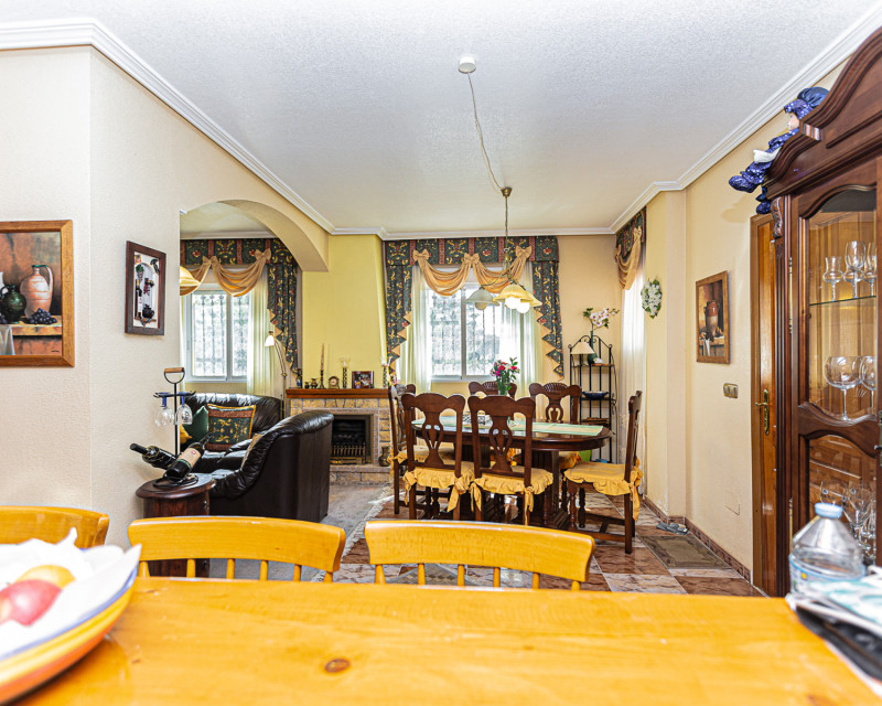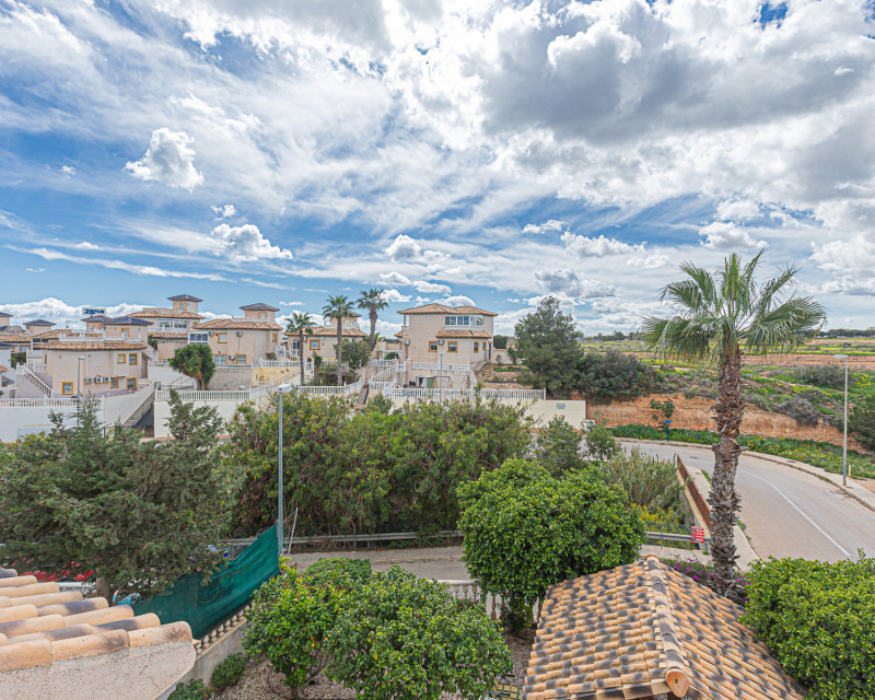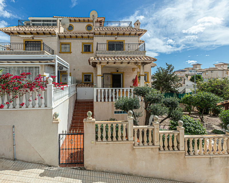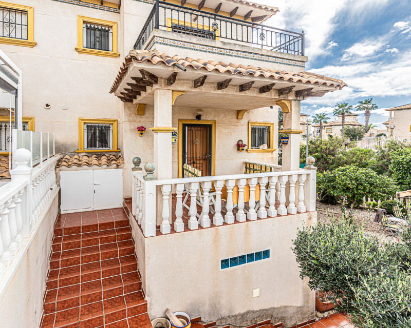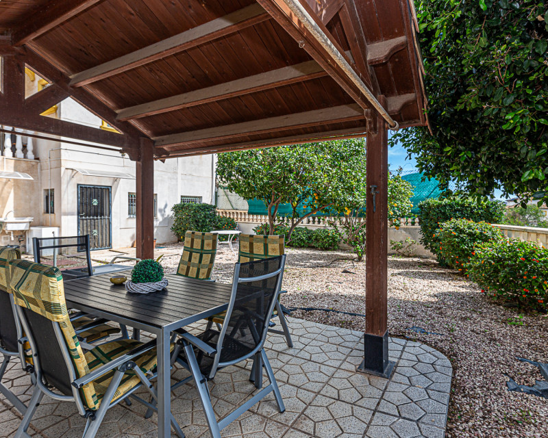 This impressive quad style property is located on a privileged corner plot between Playa Flamenca and La Zenia, in a gated residential community with a communal swimming pool. The property is located on the outer part of the complex, allowing for greater privacy and natural light. Upon entering, you are welcomed by a spacious living-dining area, offering an ideal space for family gatherings. The open-plan kitchen is perfectly integrated into the living room, providing a modern and open atmosphere. On the ground floor, there is also a guest bathroom. On the first floor, the property features two bedrooms. The master bedroom has access to a private terrace, perfect for enjoying fresh air and the views. Additionally, there is a full bathroom with a shower on this floor. The second floor is dedicated to a private solarium, an ideal space for sunbathing throughout the year, with clear views and plenty of natural light. The property is located on a corner plot, giving it multiple orientations, including southwest on the plot and northwest in the master bedroom, ensuring optimal light and natural ventilation. One of the standout features of this property is the additional dwelling on the ground floor, which includes a bedroom, living-dining room, bathroom with a shower, and kitchen with a breakfast bar. This independent area is perfect for visitors or for long-term rental, making it an excellent choice for large families or investors. On the exterior, the garden features a wooden pergola, ideal for enjoying outdoor barbecues with family or friends. The garden also includes several Mediterranean trees, such as an olive tree and a lemon tree, adding charm to the space while being easy to maintain. The property is sold furnished and is equipped with air conditioning in the living room, as well as a gas fireplace for cooler months. The property also has mosquito screens on the windows for added comfort. This property is ideal for both large families and investors looking for a property for long-term rental, as short-term tourist rentals are not allowed in this community. Information about the area: Playa Flamenca and La Zenia are two of the most sought-after areas on the Costa Blanca, known for their beautiful beaches and excellent infrastructure. Playa Flamenca is famous for its wide range of services, including restaurants, bars, shops, and supermarkets. The beach is peaceful and perfect for enjoying the sea, and the area is surrounded by recreational and sports facilities. La Zenia is also one of the most desirable areas, especially due to its proximity to La Zenia Boulevard, one of the largest shopping centers in the region, featuring international brand stores, restaurants, cafes, and entertainment options. The area also has excellent transport connections and access to some of the best beaches in the region. The combination of these two areas makes this property an attractive option for both permanent residents and those seeking a second home by the sea.
