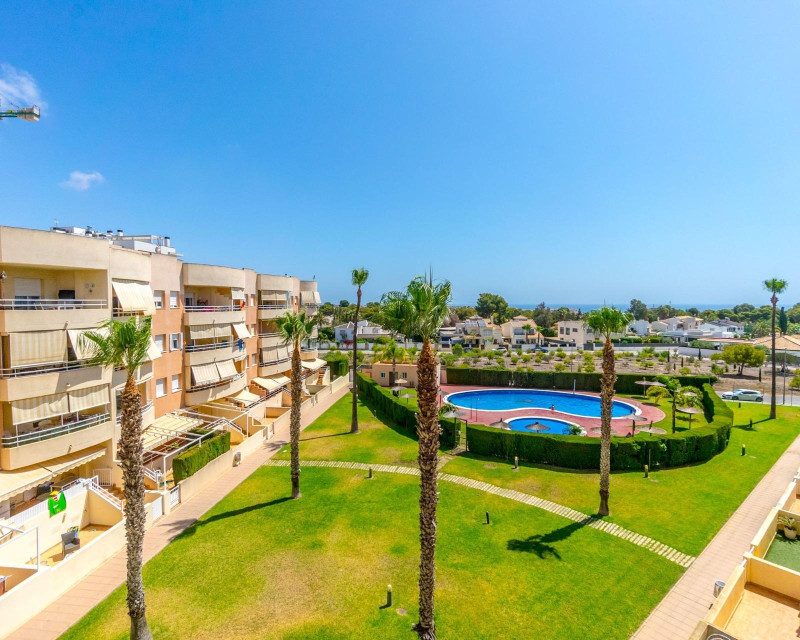 Spacious apartment located in Dehesa de Campoamor, one of the most beautiful areas on the Orihuela Costa. It is just 800 meters from the magnificent sandy beaches. This beautiful apartment has a constructed area of 107 m2 and consists of 3 bedrooms and 2 bathrooms. It features a fully equipped separate kitchen with a laundry room and a large northeast-facing glazed terrace overlooking the communal pool and common areas. Very bright and airy, the home offers all the comfort and tranquility. Communal areas include a swimming pool and green areas. The building has closed-circuit video surveillance. A supermarket, bus stop, sports center, restaurants, and bars are within a 5-10 minute walk. A perfect location for a summer vacation or year-round residence. OPTIONAL: Parking space (16 m2) with a storage room (7.6 m2) in the underground garage for €18,000.~~The sale price does not include tax (ITP - current rate according to autonomous community)