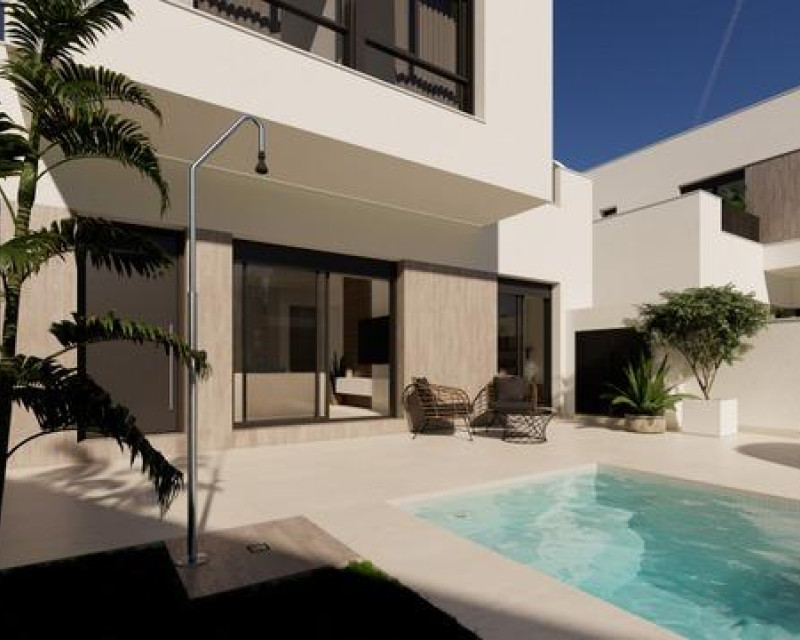 New Build Villas in San Fulgencio with Private Pool and Modern Design Exclusive development of 7 detached south-facing villas on the Costa Blanca Discover this attractive development of 7 modern detached villas in San Fulgencio, a charming municipality in the province of Alicante. Designed in a contemporary style and south-facing to maximise natural light, these homes combine comfort, quality and an ideal location on the southern Costa Blanca. Functional layout and outdoor spaces The villas are spread over two floors and offer an excellent interior layout: 3 spacious bedrooms, one of them on the ground floor 2 full bathrooms and 1 additional toilet Fully furnished open-plan kitchen with appliances included Bright living room with access to the outside Outside, each property has: A 3x5 metre private swimming pool Parking within the plot Two open terraces on the upper floor, ideal for enjoying the sun all day long Superior qualities and energy efficiency The villas are built with high-end materials and focused on sustainability: Electric blinds Exterior carpentry with double glazing Aerothermal system for hot water Pre-installation for ducted air conditioning Bathrooms fitted with furniture, screens and mirrors Strategic location in San Fulgencio San Fulgencio offers the tranquillity of a residential environment with all amenities close at hand, such as restaurants, supermarkets, pharmacies and more. In addition, its excellent location allows easy access to the main points of interest in the area: La Marina Beach – 7 km Guardamar del Segura – 10 km La Marquesa Golf Course (Ciudad Quesada) – 6 km Torrevieja town centre – 18 km Alicante-Elche International Airport – 30 km Ideal for living, investing or enjoying holidays These villas represent a unique opportunity for both permanent residence and property investment in one of the most sought-after areas of the southern Costa Blanca. Whether you want to enjoy the Mediterranean sun or as a second home, this project offers quality, design and an excellent location. Contact us today for more information or to schedule your visit and discover your new home in San Fulgencio.