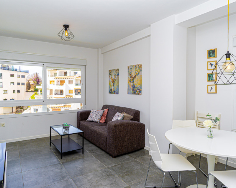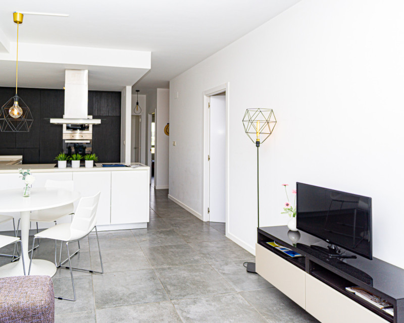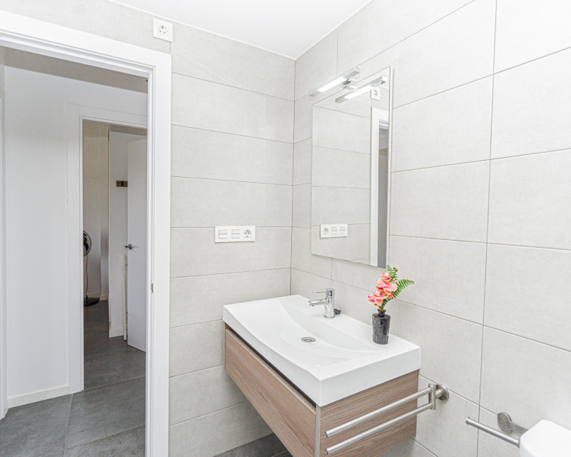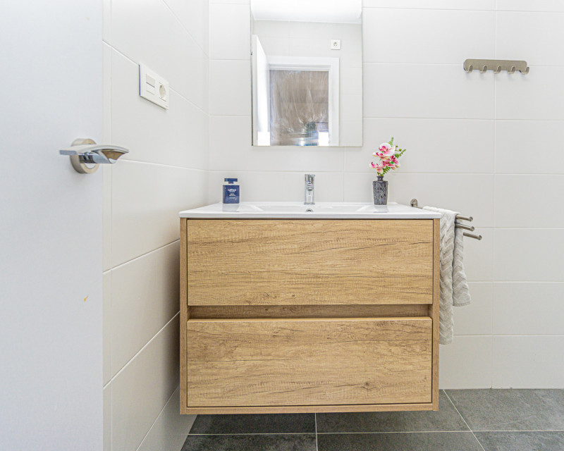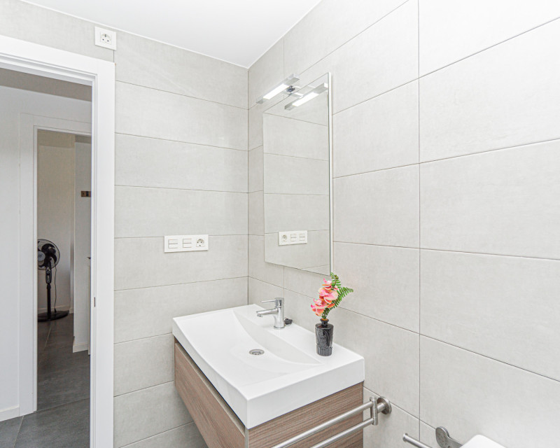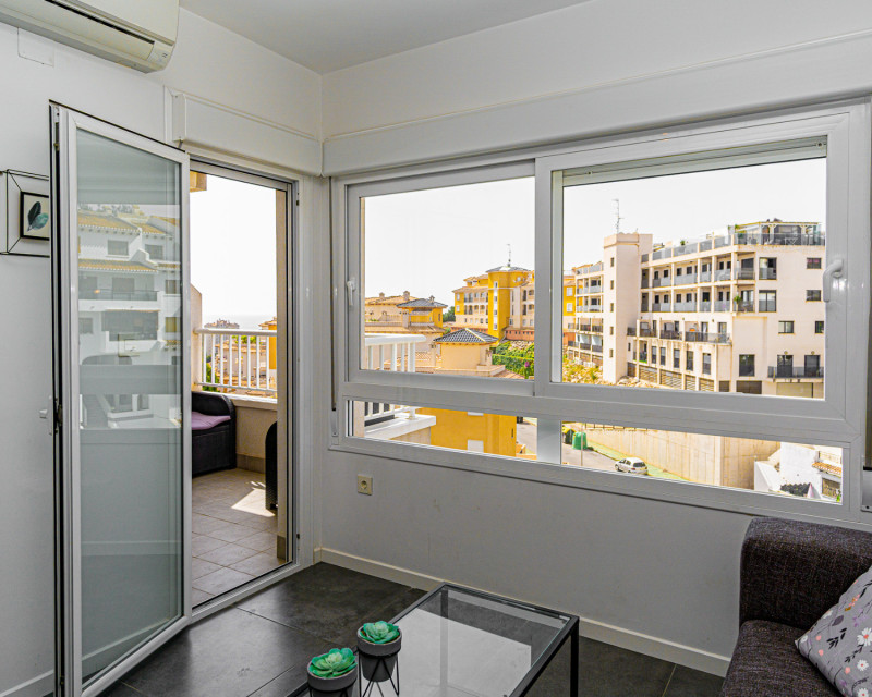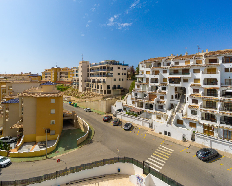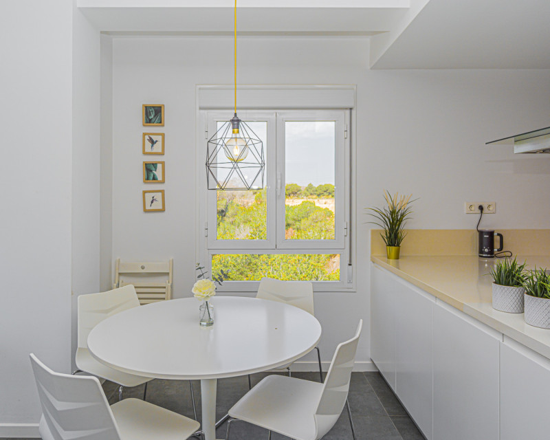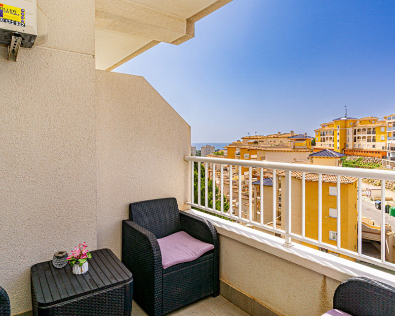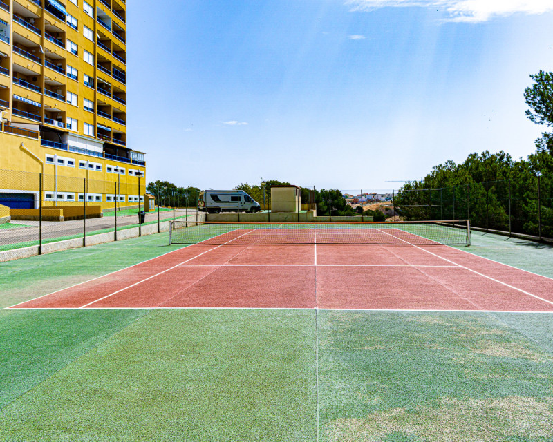 We present this lovely apartment located on the fifth floor of a modern building with a lift, built in 2016, in the sought-after urbanisation of Altos de Campoamor. The building offers a spacious and bright entrance hall, giving a great first impression. The layout is practical and comfortable. To the right of the entrance are two spacious bedrooms, both offering beautiful views of the Campoamor ravine and the Las Ramblas and Campoamor golf courses – ideal for nature and golf lovers. Directly ahead is the first bathroom with a shower. To the left, you’ll find the open-plan kitchen with breakfast bar, which connects seamlessly to the bright and spacious living-dining area, tastefully decorated and furnished for comfort and functionality. A third bedroom with a private en-suite bathroom adds an extra level of convenience and privacy. The terrace is one of the property’s highlights, offering incredible sea views – perfect for relaxing, dining outdoors, or enjoying the Mediterranean sunset. The apartment is sold furnished (except for the bed in the main bedroom) and includes appliances. There is also air conditioning in the living room. The community features fantastic shared areas, including a large swimming pool surrounded by natural grass, tennis court, picnic area, and ping-pong table, ideal for enjoying outdoor life. This is a fantastic opportunity for a permanent residence, holiday home, or investment property. Don’t miss out – contact us today to arrange a viewing!