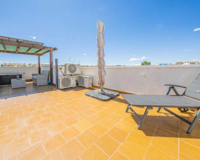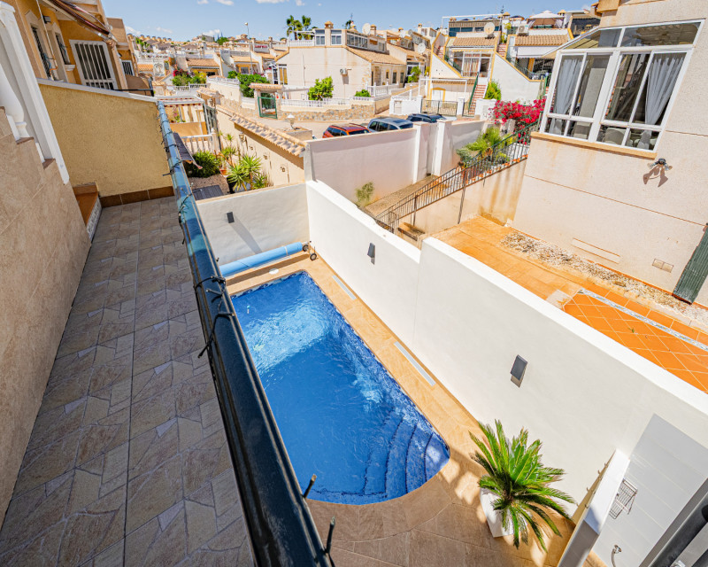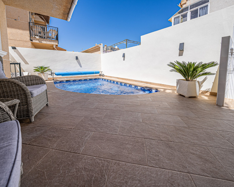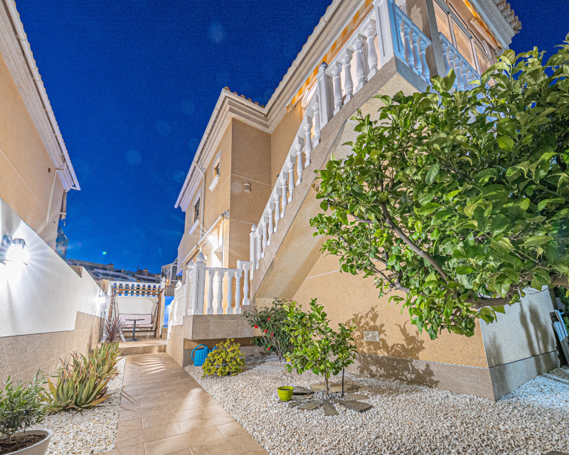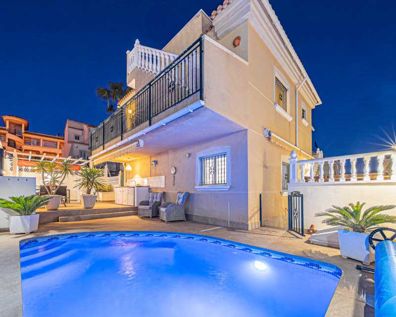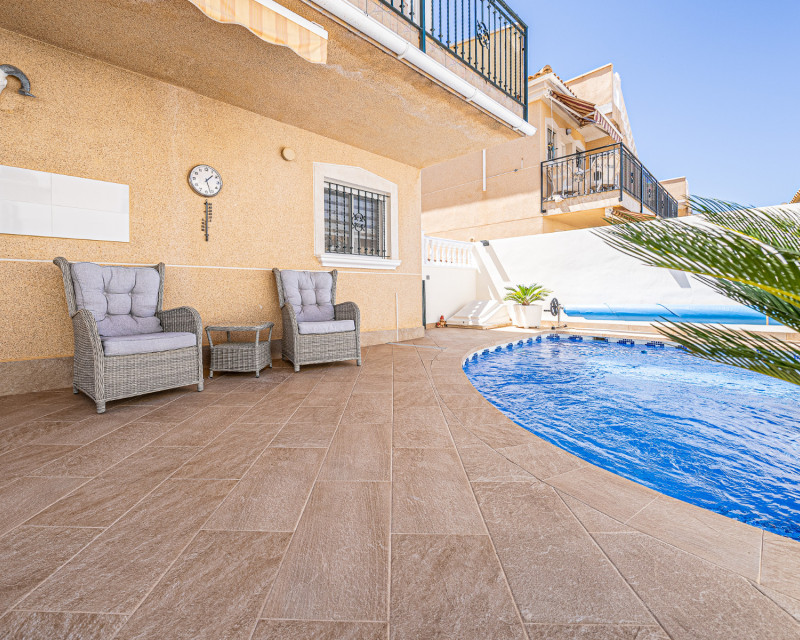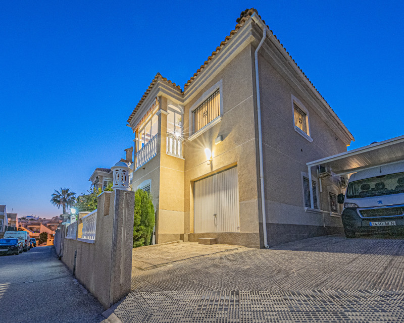 Discover the charm of Villa Tialta, a stunning detached villa perfectly positioned in the sought-after Montegolf community of Villamartin. This beautifully maintained property offers generous living space across two fully independent levels, making it ideal for larger families, extended stays, or a high-potential rental investment. Main Level – Light, Comfort, and Elevated Living The upper floor features a bright and inviting lounge and dining area, a fully equipped kitchen, two spacious double bedrooms, and two modern bathrooms. From the lounge, step directly onto your private roof terrace, complete with a pergola – the perfect spot to unwind on warm Mediterranean evenings. A glazed balcony/conservatory adds to the living space, ideal for relaxing with a book or enjoying morning coffee year-round.Lower Level – Independent Guest Apartment with Garden Access The lower level offers a self-contained guest apartment, with its own comfortable lounge and dining area, a second fully fitted kitchen, two additional double bedrooms, and a large family bathroom. This space has direct access to the beautifully landscaped garden, providing guests or family members with privacy and convenience.Outdoor Living – Entertain, Relax, Enjoy The exterior of the villa is designed for easy, sun-filled living, with a low-maintenance garden, a private swimming pool, and a stylish chill-out area. An outdoor summer kitchen, fully equipped for al fresco dining, makes this space ideal for entertaining. The property also includes off-street parking for two large vehicles plus an additional garage.Move-In Ready with Exceptional Extras Villa Tialta is offered partly furnished and comes with high-quality appliances and numerous upgrades, including:     Air conditioning (hot/cold) throughout     Ceiling fans in all rooms     Pre-installation for central heating and solar panels     Official tourist licence for immediate rental use This property is ready to be enjoyed as a permanent residence, holiday home, or income-generating investment.Prime Location – Golf, Beaches, and Community Situated within walking distance of the popular Villamartin Plaza, you’ll have a vibrant selection of restaurants, cafés, bars, shops, banks, and a local bus service at your fingertips. The award-winning beaches of Orihuela Costa are just 4 km away, offering crystal-clear waters and Blue Flag amenities. Villamartin is internationally renowned for its prestigious golf course and its year-round lifestyle appeal, with a welcoming, multinational community and a relaxed coastal vibe that makes everyday feel like a holiday. Don’t miss your chance to own this exceptional villa – contact Inmo Investments today to arrange your private viewing. Villa Tialta is waiting to welcome you home.