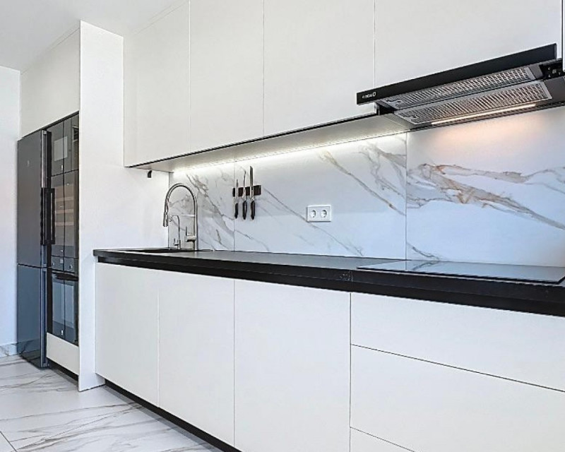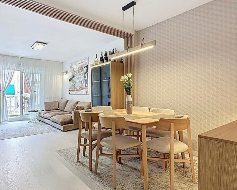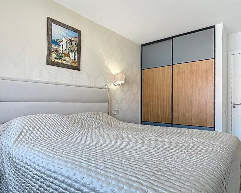 Just 200 meters from the sandy shores, this exceptional 99 m² apartment has been renovated to the highest standard, combining cutting-edge comfort with sophisticated style. Every detail has been meticulously crafted to create a home that is both luxurious and practical, perfect for year-round living or as an upscale holiday retreat. Inside, you’ll find 2 spacious bedrooms, a large and bright living room, and a fully equipped separate kitchen featuring premium appliances — washer-dryer, dishwasher, oven, microwave, refrigerator, 36-bottle wine cooler, coffee machine, waste disposal unit, and a full-house water filtration system. The apartment offers advanced sound insulation in both walls and windows, radiant floors, and centralized A++ air conditioning with mobile control. Smart living features include automatic shutters (with reinforced blinds on the balcony), silent borderless doors, double-glazed light-reflective windows, an alarm system, and surveillance cameras. The home is sold fully furnished with high-quality finishes. Enjoy your private solarium terrace, underground parking space, and access to a beautifully maintained building with a lift and a communal pool. A rare opportunity to own a move-in-ready, state-of-the-art property in a prime coastal location — just steps from the beach and all amenities.