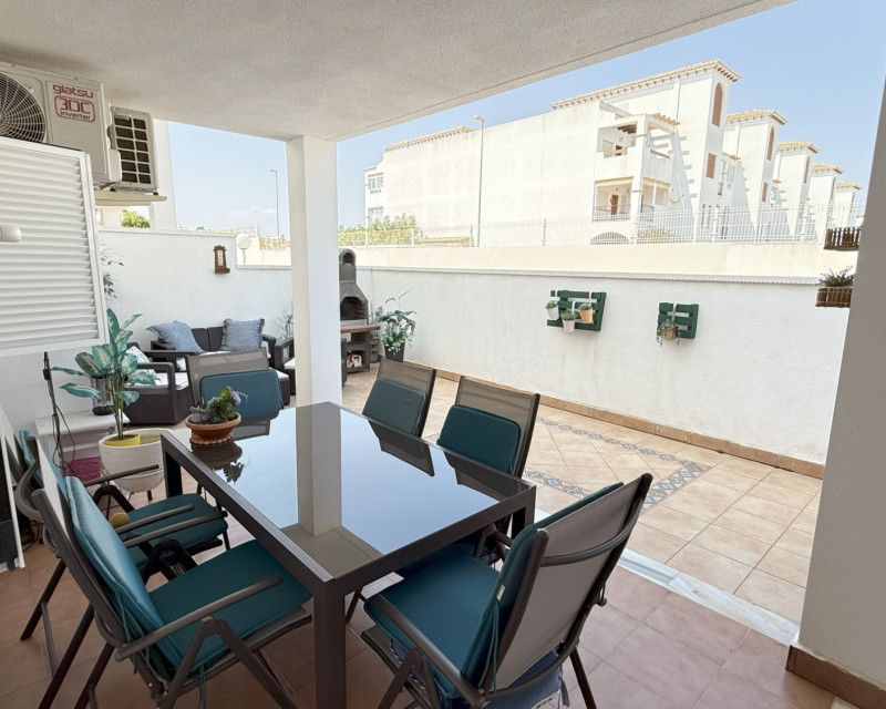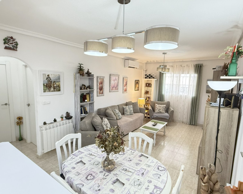 Located in the beautiful urbanisation of Zeniamar, in the very heart of the Costa Blanca’s tourist centre yet offering complete tranquillity, this charming ground floor bungalow is a true gem. The community is renowned for its immaculate upkeep, lush green areas and attractive swimming pool. The property offers a spacious front terrace with built-in barbecue. Inside, you will find a bright living area with a recently renovated open-plan kitchen, fully equipped with modern appliances. Next to the kitchen is a generous utility room. The bungalow also includes two large bedrooms with fitted wardrobes, an additional storage room and one bathroom. Every room is equipped with heating and air conditioning, ensuring comfort all year round. Perfectly located just 2 km from La Zenia Boulevard, 2.5 km from the sea and about 45 minutes from Alicante airport. An ideal home for those seeking peace and relaxation in the vibrant heart of the Costa Blanca.