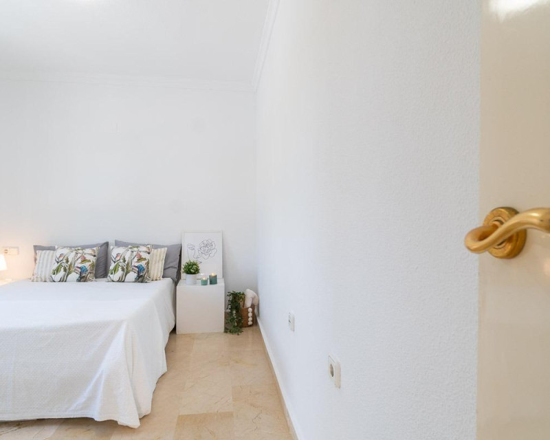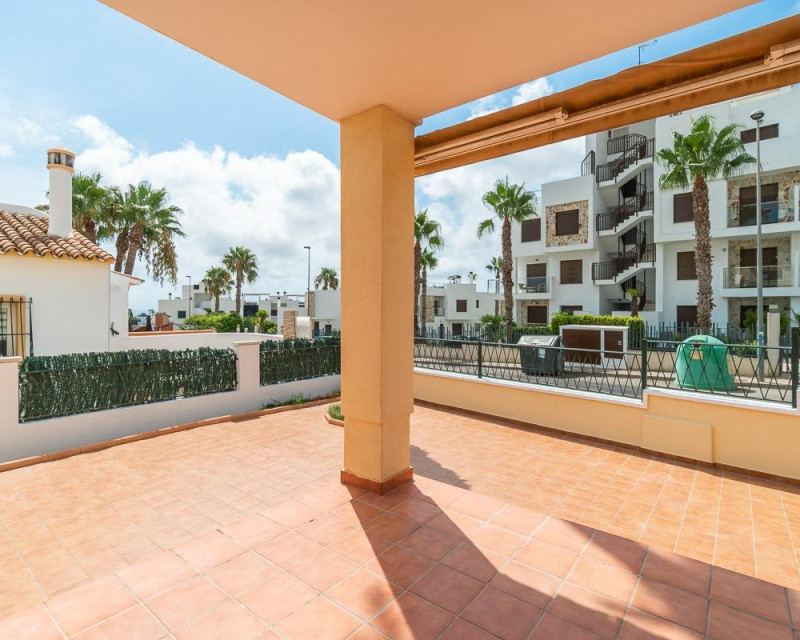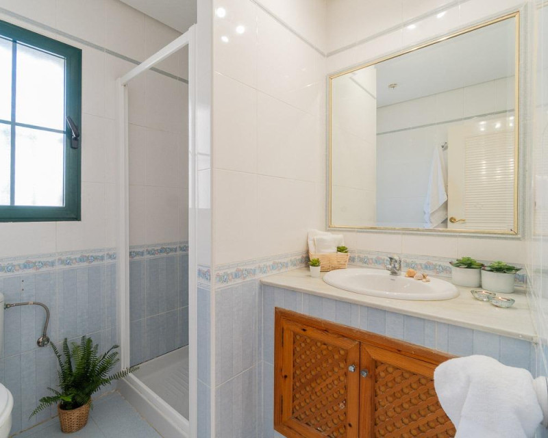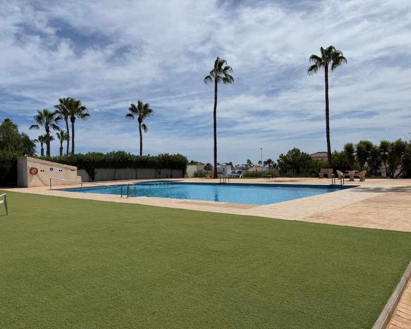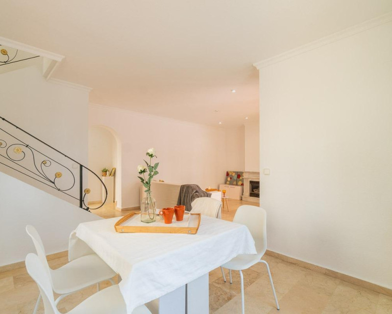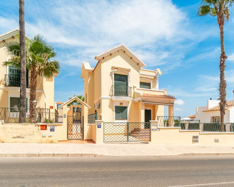 In one of the quietest and most exclusive areas of the VillaMartin development, very close to three golf courses and with its own garden and pool, lies this beautiful villa overlooking green areas, perfect for a large family.~The property is located near three golf courses: Las Ramblas, Campoamor, and Villamartín. It also has easy access to the AP-7 motorway exit, with direct connections to the airports of Alicante (approx. 40 km) and Murcia (approx. 40 km).~It features a communal pool with gardens, where you can enjoy sunbathing and swimming with the rest of the neighbors. It also has its own garden and tiled terraces, and a pool in need of renovation.~The villa's size is ideal for those looking for space, or for entertaining guests and friends; with its 3 bedrooms, 2 bathrooms, and a good-sized plot and garden area.~The 410-square-meter plot is perfect for having space and a sense of independence, with its paved front garden with a vehicle entrance and a paved rear garden with unobstructed views. However, since it's paved and doesn't have many trees and plants, it doesn't require much maintenance or work. The villa faces south on its main facade, terraces, and solarium, so it has sun practically all day. This villa is undoubtedly the dream of many.~And the layout of the home: accessed from the garden, as mentioned, is the first terrace, facing south-southwest. It has sun all day long, but at the same time, being open to the garden and the street, it lets in a full breeze. This spacious terrace, with room for sofas and tables, leads to the main entrance of the home with a security door, which opens onto the spacious and bright living and dining area with a fireplace. It also has a separate kitchen with its own door and window, allowing you to cook without having to worry about odors and grease entering the rest of the home.~Also on the ground floor is a spacious bedroom with a built-in wardrobe and a bathroom with a walk-in shower. This means that if the family has an elderly person or someone with mobility issues, they can live on this floor alone without having to go up and down stairs.~The first floor, accessible via the two-flight interior staircase with easy access, leads to the other two bedrooms with built-in wardrobes and direct access to the large solarium and balcony. This floor also features a second bathroom, this time with a bathtub for relaxing soaks and built-in furniture.~This means that each floor has its own bathroom, bedrooms, and space to enjoy both the outdoors and indoors, with terraces, making it the perfect home for a large family.~~The home is worth a visit for its spaciousness, its light, its proximity to all amenities and the golf course, and its tranquility.