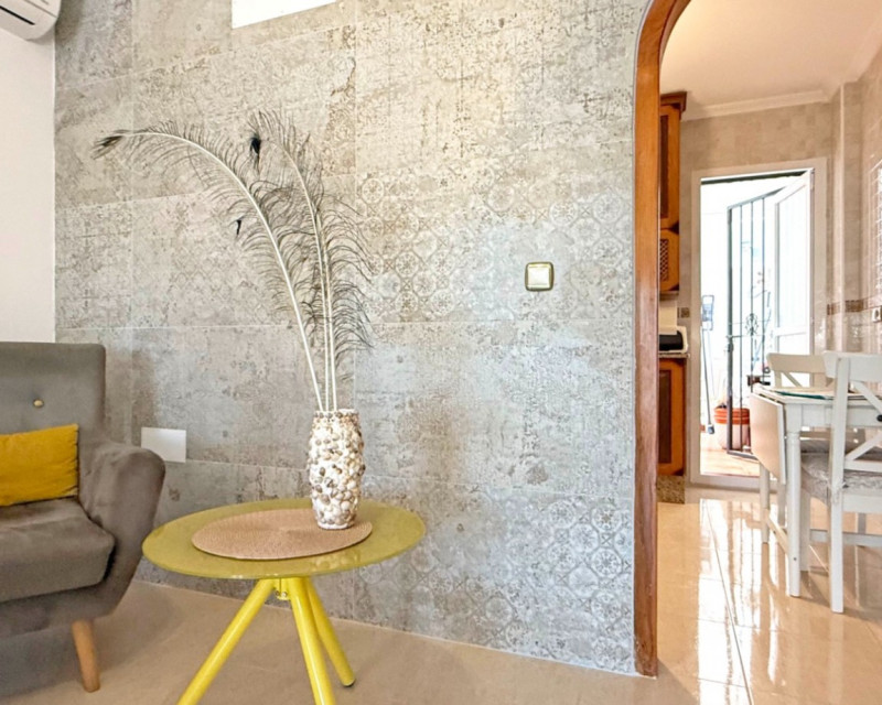 We are delighted to present this charming ground floor apartment located in the sought-after area of Lomas de Cabo Roig, just a short distance from the beaches and golf courses of Orihuela Costa. The property offers 2 bedrooms, 1 bathroom, a well-equipped independent kitchen, and a bright living and dining area. The home stands out for its generous outdoor spaces: a large front terrace with open views of the surrounding nature, perfect for enjoying the Mediterranean climate, and a spacious rear patio ideal for relaxing or entertaining. Situated in good condition and filled with natural light throughout, the apartment provides both comfort and convenience. Residents can also enjoy access to a well-maintained communal pool, making it an excellent choice for holidays, permanent living, or as a rental investment. All essential services—including shops, restaurants, and supermarkets—are within walking distance, ensuring a relaxed and practical lifestyle. Key Features: Ground floor apartment in Lomas de Cabo Roig 2 bedrooms & 1 bathroom Independent, fully equipped kitchen Bright living spaces Large terrace with open nature views Spacious rear patio Communal pool Good condition throughout Walking distance to all services