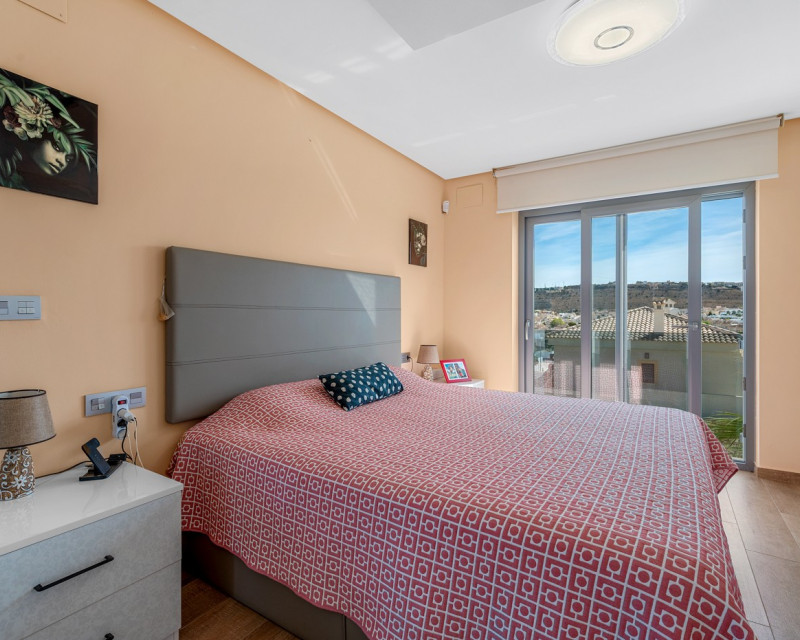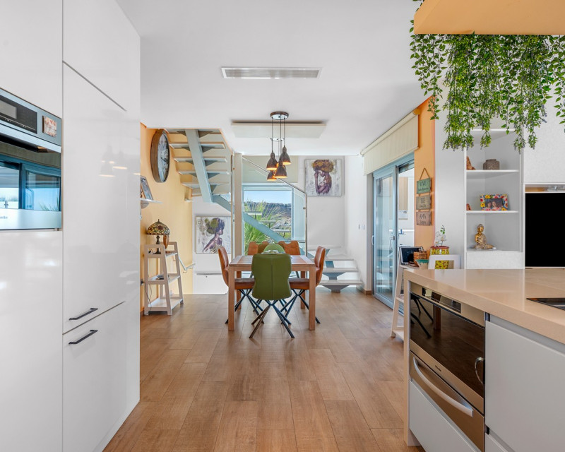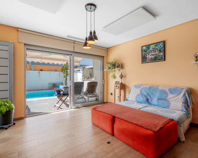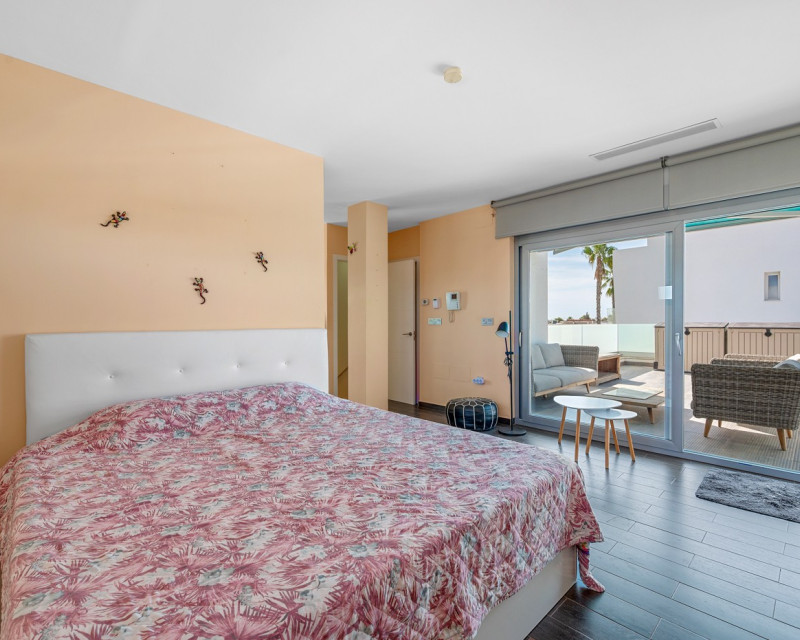 This impressive villa in Benijófar combines luxurious living with practical possibilities. The top floor features a very spacious master bedroom, a large dressing room, and a generous bathroom. The bedroom opens onto an extensive terrace, perfect for sunbathing or enjoying the views. The ground floor (approx. 85 m²) is currently set up as a practice area, with one large main room and two adjoining treatment rooms. It also includes a laundry room, a large storage area, and a separate room for the boiler and heating system. This level offers plenty of potential: the treatment rooms could easily be converted into additional bedrooms, and the entire ground floor could serve as a guest house or self-contained apartment. Please note: no photos of this floor are currently available. On the first floor is the spacious living area with open kitchen, fully equipped with Miele appliances and finished to a high standard. This floor also includes a large bedroom with an ensuite bathroom and a separate toilet, with direct access to a terrace. Large sliding doors from the living room lead to the private pool and sunny terrace, seamlessly connecting indoor and outdoor spaces. A bright and spacious office is also available. Outside, next to the pool, there is a poolhouse with storage, a separate toilet and shower, and a covered outdoor kitchen/bar, perfect for entertaining or relaxing in the sun. This villa offers the perfect combination of luxury, comfort, and functionality – ideal for those seeking a high-end home with both private living space and a fully equipped practice area.