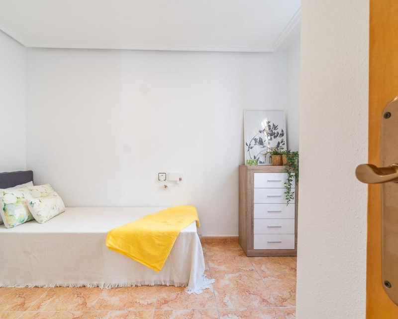 Discover this charming townhouse in Altos del Limonar, one of the most sought-after areas of Torrevieja to live all year round thanks to its peaceful atmosphere, excellent location, and wide range of nearby services. The property is located in a private residential complex with a communal pool and green areas, perfect for enjoying the Mediterranean climate in a safe and well-kept environment.~~The house features private parking within the plot, a cozy front porch, and upon entering, a spacious living-dining room connected to an independent kitchen. At the back, there is a private patio with a spiral staircase leading to a private solarium, ideal for relaxing or as extra outdoor space. It also offers two bedrooms, a bathroom, and east-west orientation, ensuring natural light throughout the day.~~The location is excellent: next to schools and institutes, very close to the Natural Park of the Salt Lakes of Torrevieja, surrounded by shopping centers, and with easy access to the extension of the new areas of Torrevieja.~~Thanks to all these features, this property is ideal both as a permanent residence and as a holiday or seasonal rental, especially attractive for teachers and professionals working in the nearby educational centers.