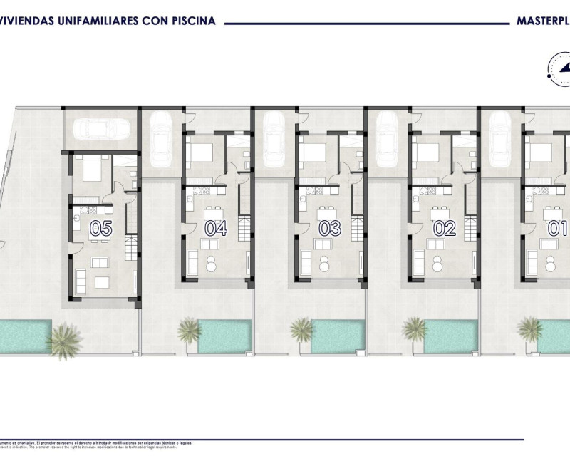 New Build Semi-Detached Villas with Private Pool in San Pedro del Pinatar Modern Homes in a Prime Location This exclusive development of 5 semi-detached villas is located in San Pedro del Pinatar, a vibrant coastal town in the Costa Cálida. Positioned near the municipal sports center, within walking distance to the town center, and just 3.5 km from the beaches of the Mar Menor and Mediterranean, these homes offer the perfect blend of comfort, convenience, and Mediterranean lifestyle. Contemporary Design and Functional Layout Each villa is distributed across two floors and designed with modern architecture, maximizing space and natural light. With 3 bedrooms and 2 bathrooms, these properties are ideal for families, holiday homes, or investment. Ground Floor: Open-plan kitchen connected to the bright living and dining area, one bedroom, one bathroom, a rear patio and direct access to the private garden with pool. First Floor: Two additional bedrooms, one bathroom, and a spacious terrace with access to the private rooftop solarium, perfect for sunbathing or entertaining. Quality Finishes and Comfort The villas are delivered with high-quality specifications and thoughtful details to ensure modern living: Fully furnished and equipped kitchen with appliances Private swimming pool and garden Rooftop solarium for year-round outdoor living Summer kitchen included Interior and exterior lighting package Closed private garage San Pedro del Pinatar - Lifestyle and Surroundings San Pedro del Pinatar is renowned for its year-round sunshine, sandy beaches, and natural landscapes such as the famous Salinas y Arenales Natural Park. The town offers all essential services, including shops, supermarkets, restaurants, health centers, and sports facilities, making it an excellent place for both permanent living and holidays. Distances to key points of interest: Beaches of the Mar Menor - 3.5 km Dos Mares Shopping Center - 5 km Lo Pagán Marina - 4 km Roda Golf - 8 km Murcia Airport (Corvera) - 35 km Alicante Airport – 75 km Secure Your New Home by the Sea These new build semi-detached villas in San Pedro del Pinatar combine modern design, high-quality finishes, and a privileged location close to the sea and all amenities. Contact us today for more information or to schedule a viewing and take the first step toward your dream Mediterranean home.