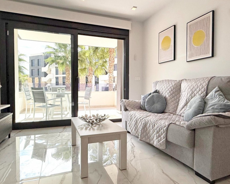 Located in a secure gated community in the heart of Los Altos, this stylish first-floor apartment combines comfort, sunlight, and convenience. The property offers 2 spacious bedrooms, 2 modern bathrooms, and a bright open-plan living area that extends onto a large south-facing balcony, where you can enjoy sunshine all day long. Sold fully furnished and ready to move in, the apartment also comes with underground parking and a private storage room. The community features a well-maintained swimming pool and landscaped gardens, creating the perfect setting for relaxation and leisure. Whether you are searching for a permanent residence, a holiday retreat, or a smart investment, this apartment is an excellent choice.