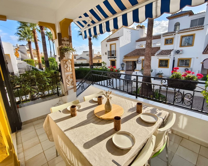 Dream home ready to move into in Villamartín, Orihuela Costa! Imagine enjoying the sun all day long on a large plot with double exposure to the east and west, in a secure condominium with a communal swimming pool and parking. This Spanish terraced house, which is sold furnished with appliances, offers 3 bedrooms, 2 bathrooms, air conditioning and tasteful décor... All you have to do is move in! Just 2 minutes from shops, 2 minutes from Villamartín golf course and less than 10 minutes from La Zenia beach, it offers the perfect balance between tranquillity and convenience. Comfort, charm and an idyllic setting: your new life starts here! For more information or to arrange a viewing, please do not hesitate to contact us.