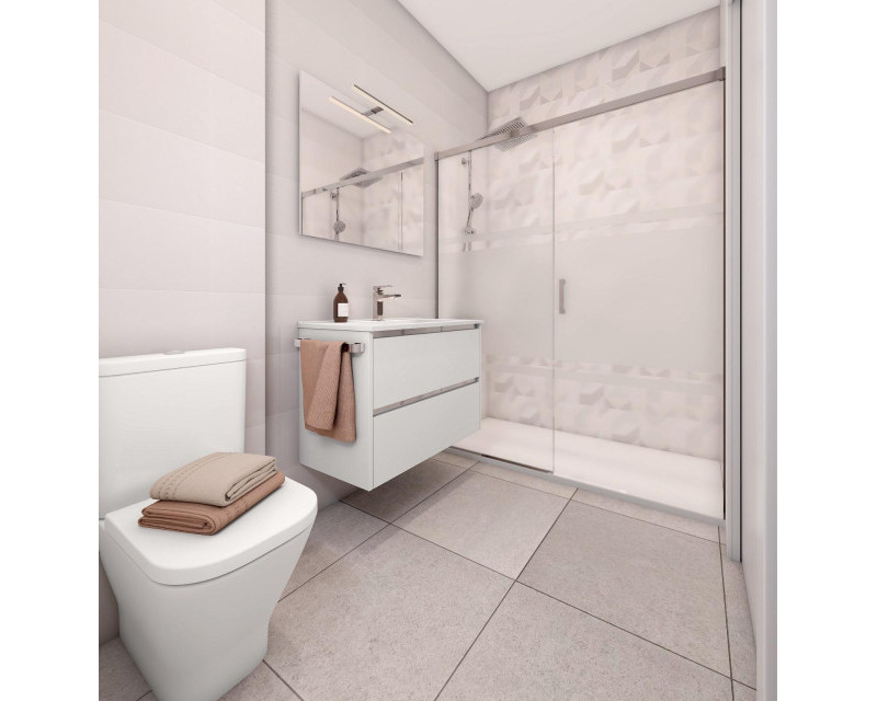 NEW BUILD RESIDENTIAL COMPLEX IN LA MANGA New Build residential complex is located in a unique and special place, between two seas, in a privileged location and with all the services you may need at your fingertips in the Region of Murcia, beautiful coastline with the beaches of transparent and shallow waters. At this residential complex apartments have been designed to make the most of every last corner of the property, as well as the the choice of materials and the design of the homes. Live a world of sensations and pleasurable moments with all the services and activities that you desire at your fingertips. Installations - Air conditioning: Air conditioning system by ducts, for hot and cold, throughout the house (except in distributors and bathrooms) and operated by central console. Electrical appliances: Stainless steel oven. Black ceramic hob with three burners. Stainless steel refrigerator. Extractor hood integrated in furniture. Integrated dishwasher. Common areas: Access to the building via white PVC door and double glazing with air chamber. Entrance halls and stair treads specially decorated with national marble. White thermo-lacquered aluminium handrail on interior staircases. Lighting by presence detection in basement and interior common areas. White motorised sectional garage access door. Stainless steel urbanisation railings. Video door entry system. Satellite dish with European channels. Swimming pool with landscaped solarium. La Manga del Mar Menor is a natural strip of land surrounded by two seas, the Mar Menor and the Mediterranean Sea. To this rarity you can add the multiple leisure and free time options, restaurants, supermarkets, medical censers, pharmacies, nautical sports censers, golf courses. La Manga is located on the north coast of the Costa Calida and is a popular holiday destination for tourists. The narrow land strip separating the warm lagoon and the colder sea has a unique microclimate. It's one of the most exotic areas in Spain. Corvera airport is about 1 hour drive away and Alicante airport about 2 hours away.