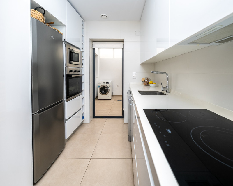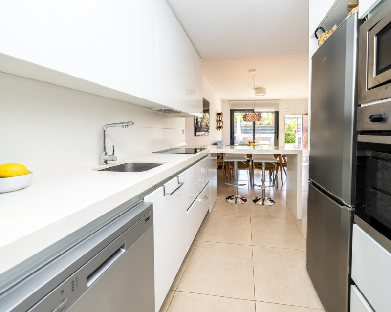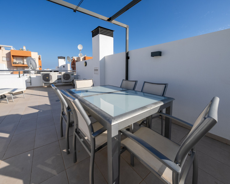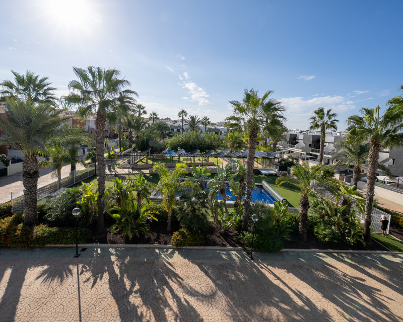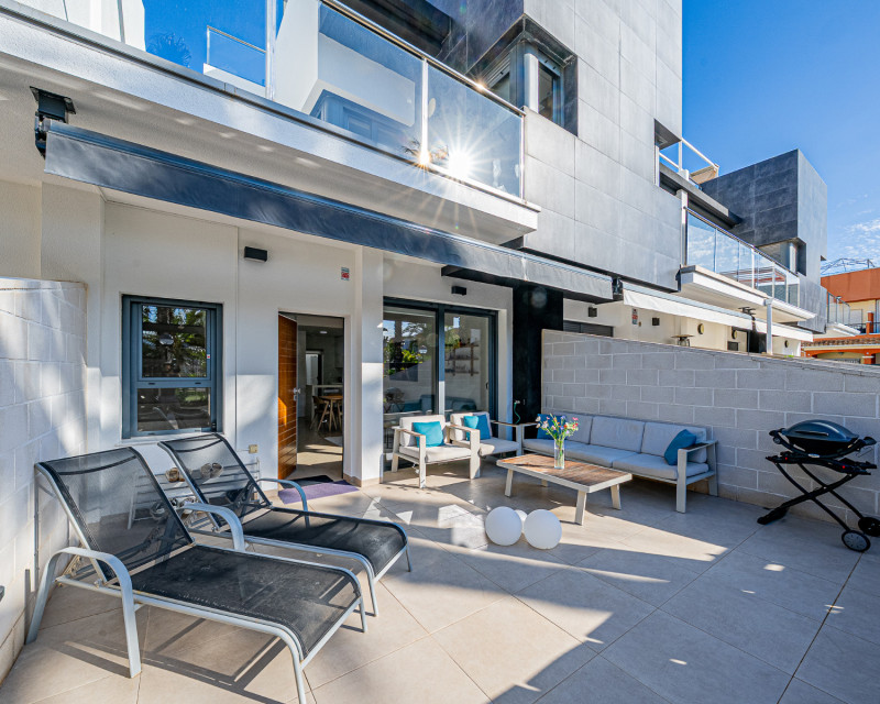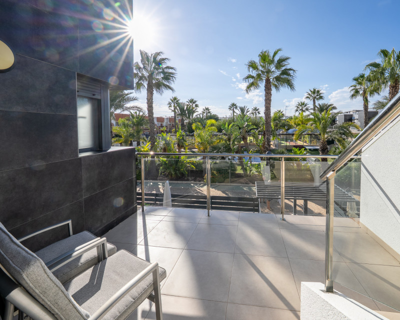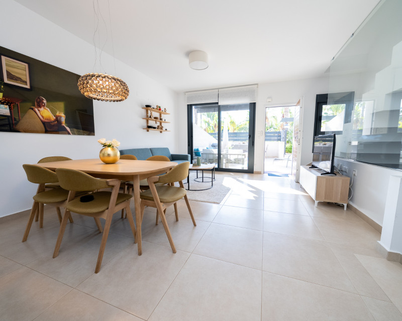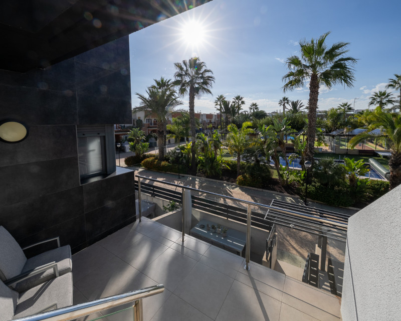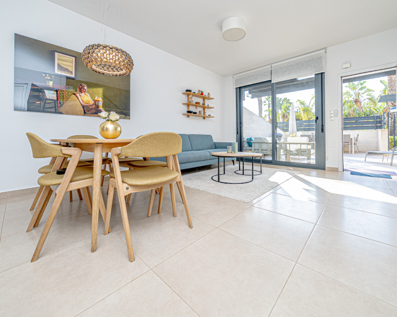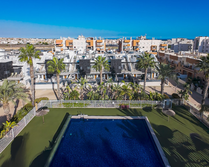 Located in the desirable area of Los Dolses, this well-presented townhouse is set across three levels and combines modern design with practical living. The main floor offers a bright open-plan living and dining area with a contemporary kitchen, an adjoining utility room with a fitted roof, and direct access from the living room to a terrace with an electric awning. The home comprises three double bedrooms and three bathrooms. The spacious underbuild, with heating cables, extra air conditioning, and direct access to the garage, is currently used as an additional living room and bedroom, adding valuable versatility. Steel railings have been fitted along the stairs for added safety. Outdoor living is equally inviting, with a private solarium, terraces overlooking the communal pool, and landscaped green areas within the community. The property is conveniently located within walking distance of local supermarkets, cafés, and restaurants. La Zenia Boulevard shopping centre is only a short bike ride away, while the Blue Flag beaches of the Orihuela Costa can be reached in just a few minutes by car or a pleasant walk. About the Area – Playa Flamenca & Surroundings Playa Flamenca is one of Orihuela Costa’s most established and popular coastal resorts. Known for its beautiful Blue Flag beaches, relaxed Mediterranean lifestyle, and excellent amenities, the area offers something for everyone. Residents enjoy easy access to international restaurants, tapas bars, and a lively weekly street market. For outdoor enthusiasts, there are scenic coastal paths, cycling routes, and several renowned golf courses within a short distance. Playa Flamenca also benefits from excellent transport connections, with Alicante and Murcia airports both reachable in under an hour. A well-maintained property in a prime location—contact us at Inmo Investments today to arrange your viewing.