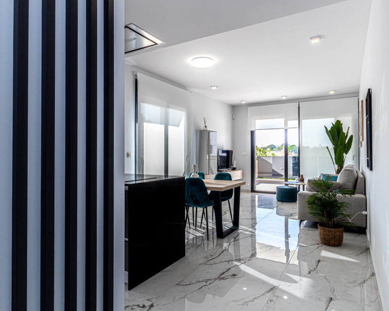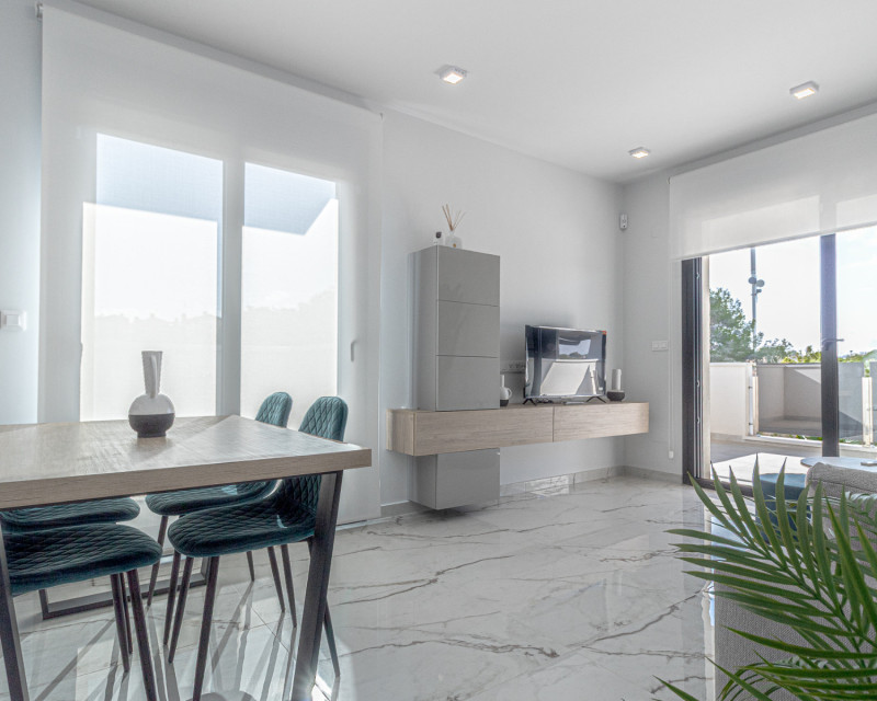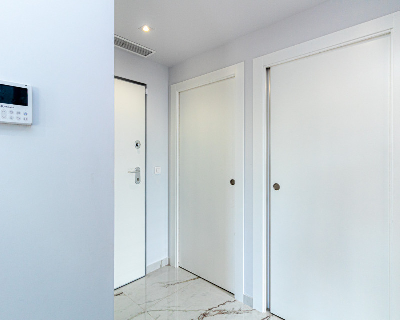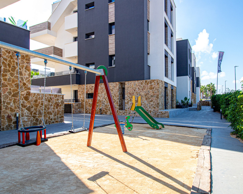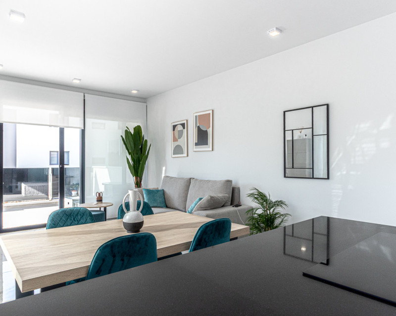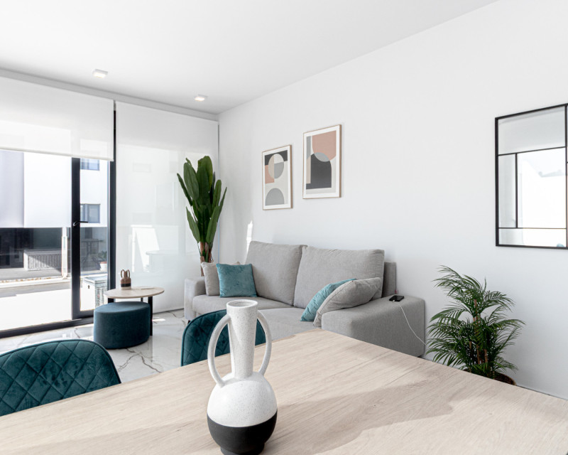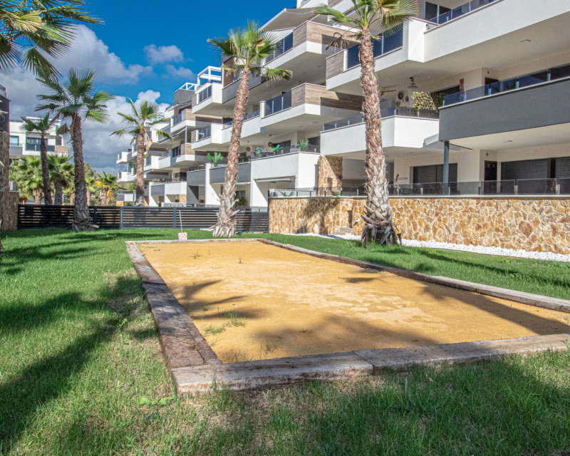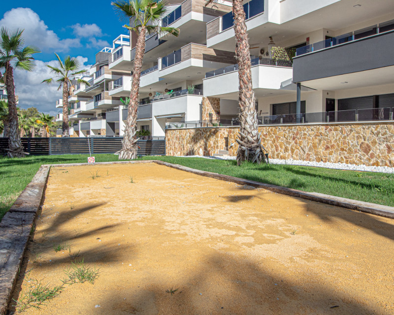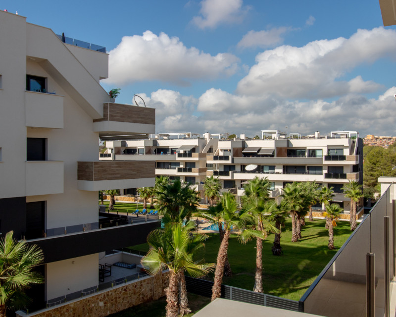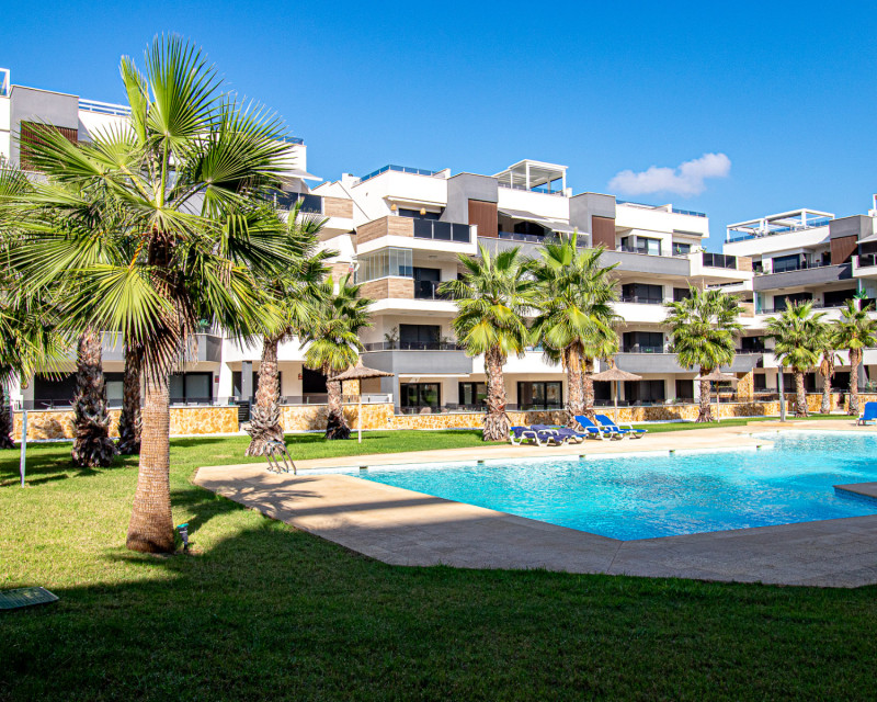 This luxurious second-floor apartment offers 83 m² of living space in a secure gated community with spa facilities. It features an open-plan living and dining area with a modern kitchen, two spacious bedrooms, and two bathrooms (one en suite). From the living room, you can access a 9 m² terrace with pleasant views over the gardens and communal areas. The property is sold fully furnished and includes underground parking. The community provides additional amenities such as a community pool, a sauna, a jacuzzi, a fitness room, and a boule court. Located in Los Altos, local amenities are within walking distance, while the beaches of Orihuela Costa and Torrevieja are just a short drive away. Contact us today for more information.
