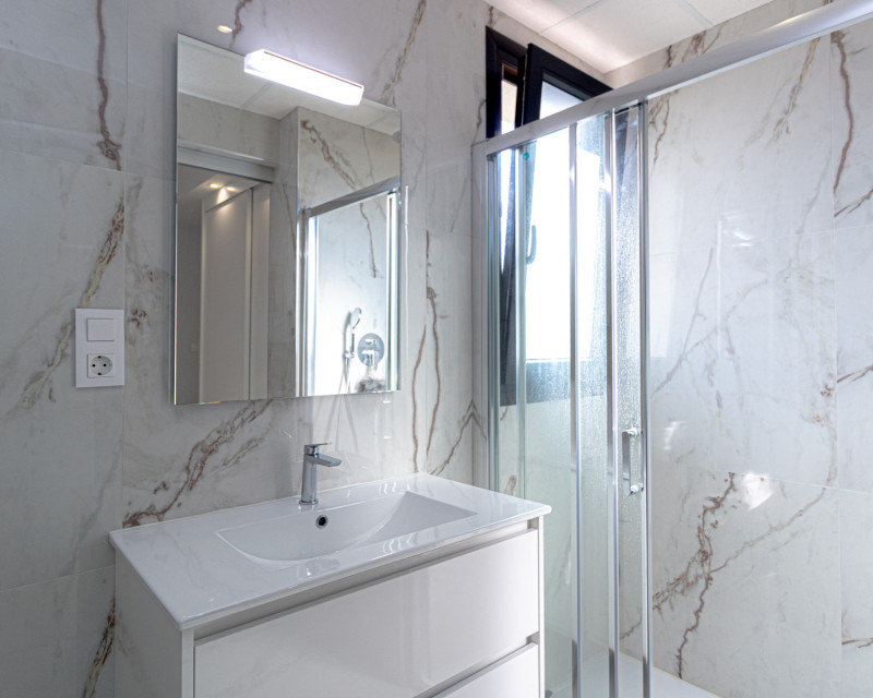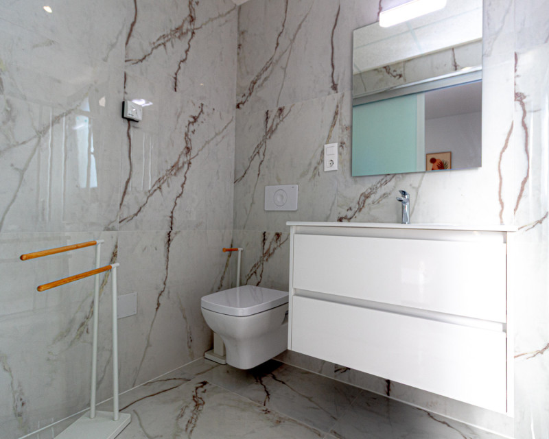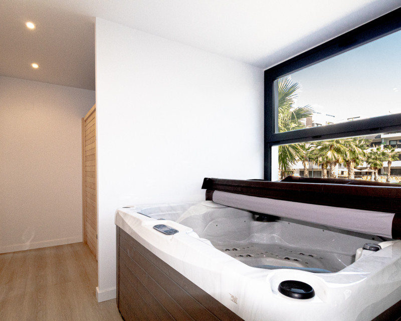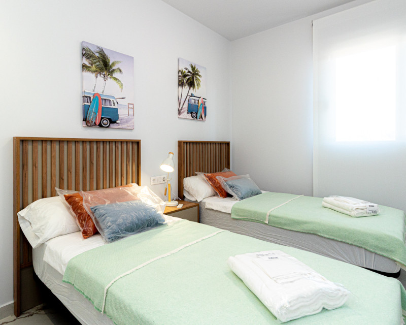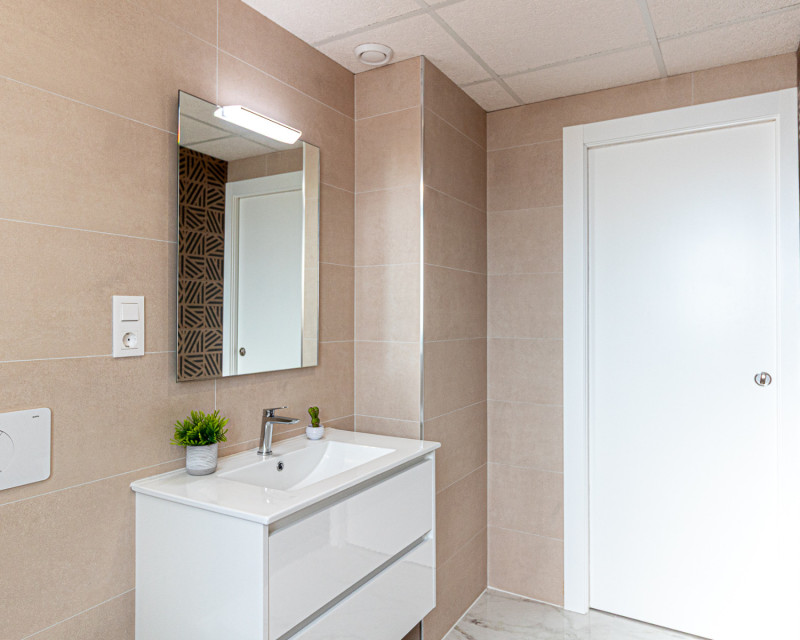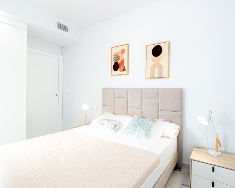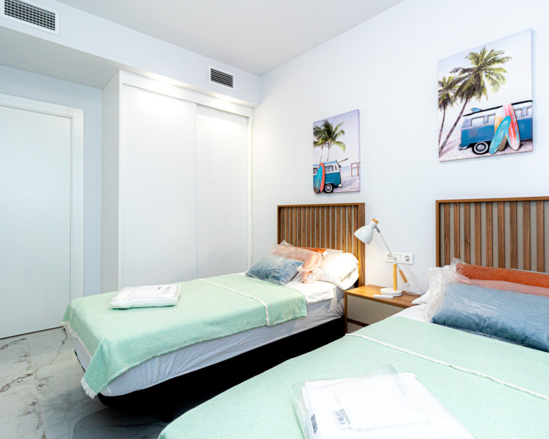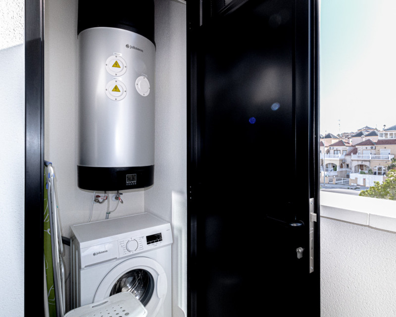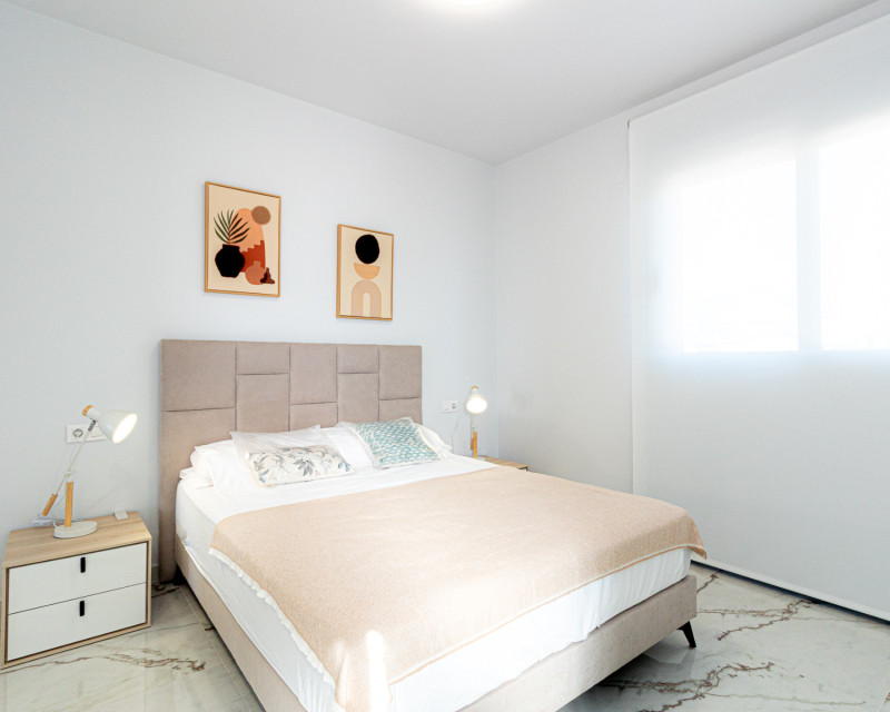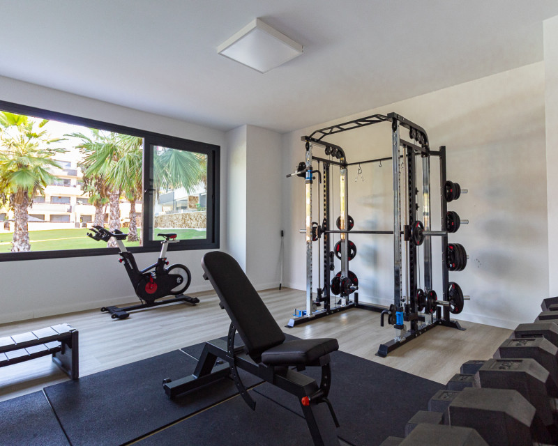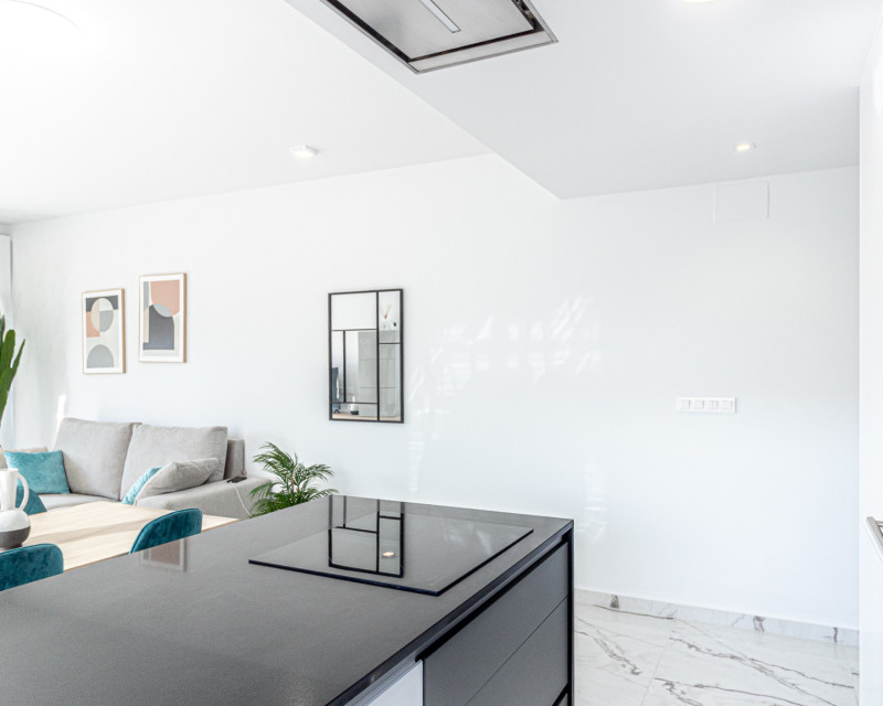This luxurious second-floor apartment offers 83 m² of living space in a secure gated community with spa facilities. It features an open-plan living and dining area with a modern kitchen, two spacious bedrooms, and two bathrooms (one en suite). From the living room, you can access a 9 m² terrace with pleasant views over the gardens and communal areas. The property is sold fully furnished and includes underground parking. The community provides additional amenities such as a community pool, a sauna, a jacuzzi, a fitness room, and a boule court. Located in Los Altos, local amenities are within walking distance, while the beaches of Orihuela Costa and Torrevieja are just a short drive away. Contact us today for more information.