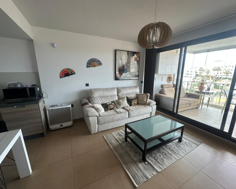 Attention golf lovers! This second-floor apartment offers 53 m² of living space, featuring a bright living room with an open-plan kitchen, a spacious bedroom, and a modern bathroom. From the enclosed balcony, you can enjoy beautiful views of the surrounding area and the golf course. The property is sold fully furnished and equipped, ready to move in. It also includes a parking space, storage room, and access to a communal pool and landscaped gardens. Located on the prestigious Las Ramblas Golf Course, just 400 metres from the clubhouse. Contact us for further information!