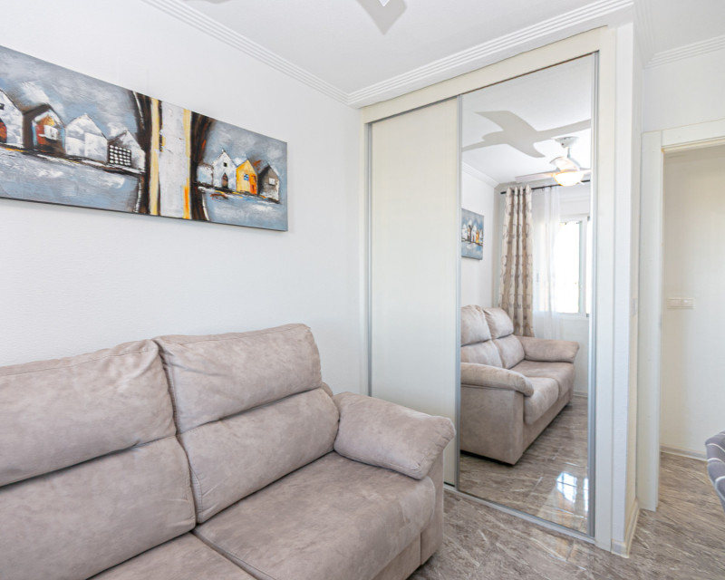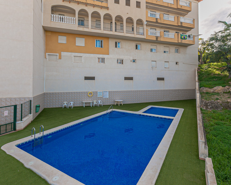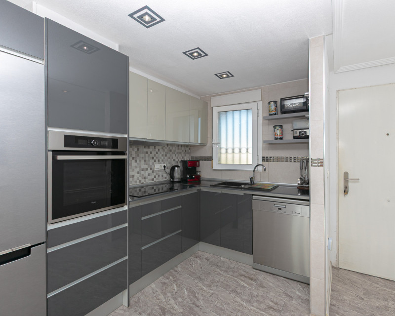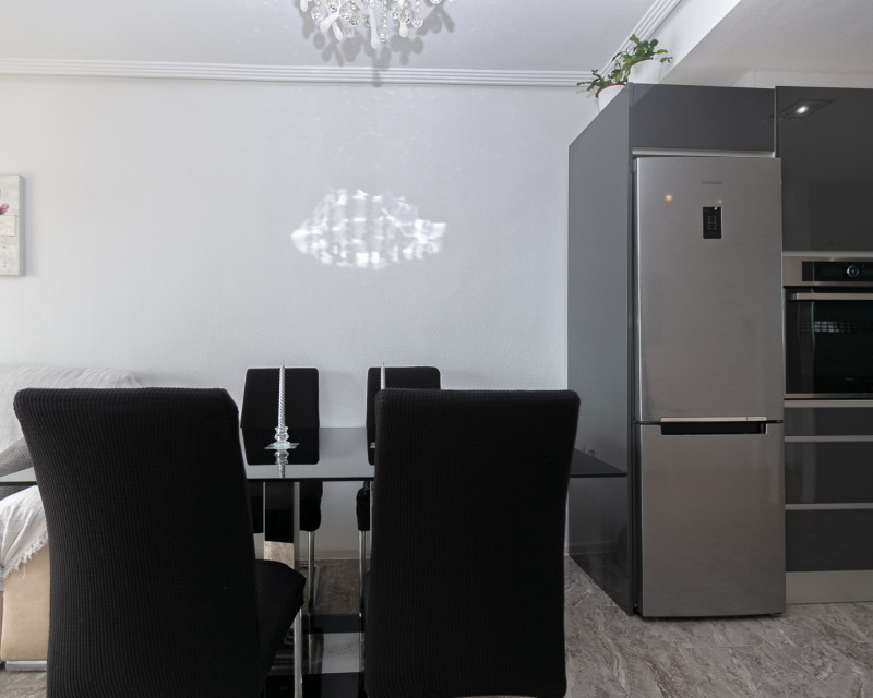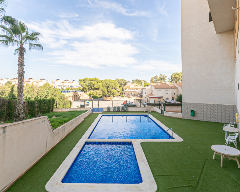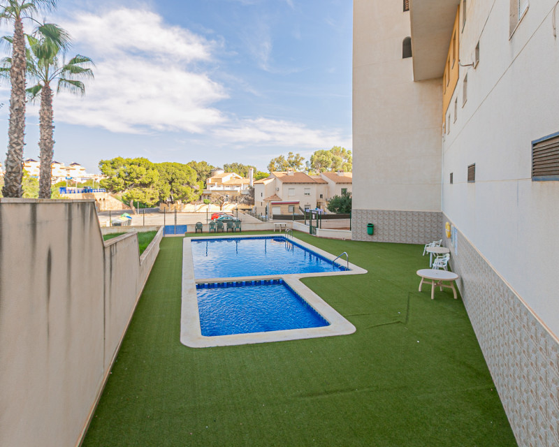 We are pleased to present this bright and welcoming apartment in La Zenia, located just 700 metres from the beautiful La Zenia Beach, one of the most popular beaches in Orihuela Costa for its friendly atmosphere and excellent amenities. With its southeast orientation, the property enjoys sunshine all year round and side sea views from the terrace, ideal for experiencing the Mediterranean lifestyle. The apartment offers a living-dining area with access to the terrace, a fully equipped open-plan kitchen, two spacious bedrooms with fitted wardrobes, and a modern bathroom with shower, where the washing machine is conveniently located. Additional features include ceiling fans in the bedrooms and air conditioning in the living room. The property is sold fully furnished and equipped with all appliances, ready to move in. The residential complex includes a communal swimming pool surrounded by sunbathing and relaxation areas. A private parking space in the underground garage is also included in the price. Located in La Zenia, Orihuela Costa, the apartment is close to all amenities – restaurants, cafés, supermarkets, pharmacies, public transport – and just minutes from Zenia Boulevard, one of the largest shopping centres on the Costa Blanca. An ideal property for year-round living, holiday stays, or as a profitable rental investment. Contact us today to arrange a viewing – your new home on the Costa Blanca awaits!
