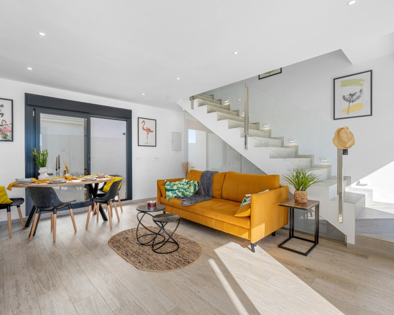 Discover this stunning modern 4-bedroom, 3.5-bathroom villa perfectly situated between Serena Golf and the shimmering coast of the Mar Menor. Combining style, comfort, and functionality, this fully furnished property offers the ideal balance between luxury living and coastal tranquility. With 192 sqm of usable space, the villa features a bright and airy open-plan living area that seamlessly connects to the outdoor terrace and pool. Its southeast orientation ensures natural light throughout the day, highlighting the elegant modern finishes and tasteful décor. The top-level solarium (83 sqm) provides a spectacular space for relaxation or entertaining, offering panoramic views of the golf course and the surrounding landscape. The huge basement is designed for leisure and convenience, boasting a cinema room, pool table area, and garage, along with an additional bedroom that comfortably accommodates up to four people — perfect for guests or family gatherings. Outside, enjoy a private swimming pool, dining area, and a green zone, ideal for soaking up the Mediterranean sun or enjoying peaceful evenings. Nestled in a quiet area with beautiful views, this villa offers privacy while being just minutes from golf, beaches, restaurants, and all local amenities. Key Features: 4 Bedrooms, 3.5 Bathrooms 192 sqm built + 83 sqm rooftop solarium Fully furnished, move-in ready Private pool and landscaped outdoor area Spacious basement with cinema, pool table, and garage Southeast orientation for optimal sunlight Peaceful location between Serena Golf & Mar Menor This villa is the perfect home for those seeking a modern Mediterranean lifestyle with a touch of luxury and relaxation.
