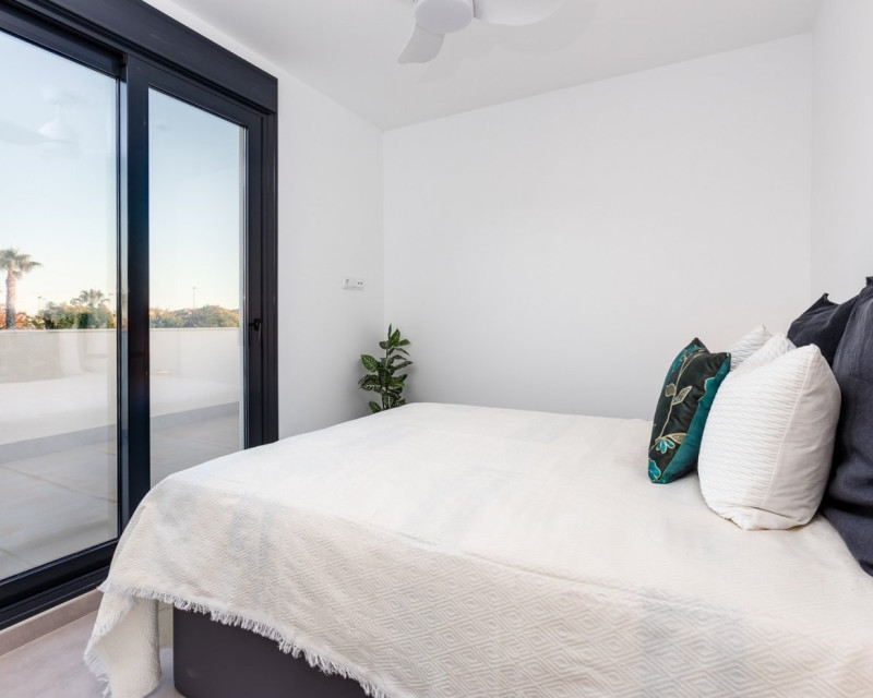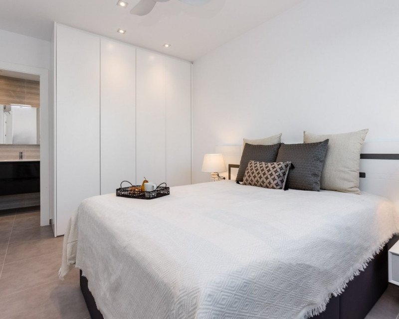 NEW BUILD VILLAS IN PILAR DE LA HORADADA New Build residential of 6 detached villas in Pilar de la Horadada. New Build one level villas has 3 bedrooms, 2 bathrooms, open plan kitchen with the lounge area, fitted wardrobes, private garden with off road parking space. These fantastic houses are covered with natural stone for minimal maintenance, the double height of the living room and large windows provide a lot of natural light. Pilar de la Horadada is the southernmost town and municipality on the Costa Blanca in the province of Alicante. The city is located on the border between the Comunidad Valenciana and the Murcia region. The town of Pilar de la Horadada is a typical Spanish town located just 2 km from the coast and the popular beaches of Torre de la Horadada. In the centre of Pilar de la Horadada you will find all amenities: shops, patisseries, banks, etc. along the main street 'Calle Mayor'. You will also experience a wonderful atmosphere near the local church on the 'Plaza de la Iglesia' where there are several cafes. In Pilar de la Horadada there is also a well-developed cycling and walking path network, and there is also a large offer of various sports activities. Lo Romero 18 hole golf course is just a short drive from town. The airports of Corvera (Murcia) and Alicante are respectively 40 and 55 minutes away.