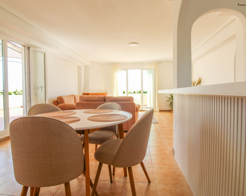 Apartment ideally situated in a prime location that perfectly combines coastal tranquillity with the convenience of having shops, supermarkets, restaurants, pharmacies, and cafés just a short walk away. The property enjoys a spacious terrace, perfect for making the most of the Mediterranean climate all year round. Just a few minutes’ walk from the beach, it offers an excellent option for both permanent living and as a relaxing holiday home. With a built area of 85 m², the apartment is located on the third floor of a building with an elevator and stands out for its bright and functional layout. It features two spacious bedrooms, one of which has direct access to the terrace, and two modern bathrooms with showers. The open-plan kitchen is fully equipped with quality appliances and connects seamlessly to a bright and airy living-dining area that opens onto a generous 50 m² terrace — the perfect space for outdoor dining or simply enjoying the sunshine. Air conditioning is installed, ensuring comfort throughout the seasons. The property is sold fully furnished and ready to move into, offering a turn-key solution for those seeking a stylish and comfortable home by the sea. Located in Punta Prima on the Orihuela Costa, one of the most sought-after areas along the southern Costa Blanca, this apartment is surrounded by beautiful scenery, golden sandy beaches, and crystal-clear waters — many awarded the Blue Flag for their cleanliness and facilities. The nearby beaches of La Zenia, Playa Flamenca, Cabo Roig, and Punta Prima are easily accessible, as are numerous leisure activities, golf courses, restaurants, and the renowned Zenia Boulevard shopping centre. This is a truly exceptional opportunity to enjoy the authentic Mediterranean lifestyle, combining comfort, style, and an unbeatable location.