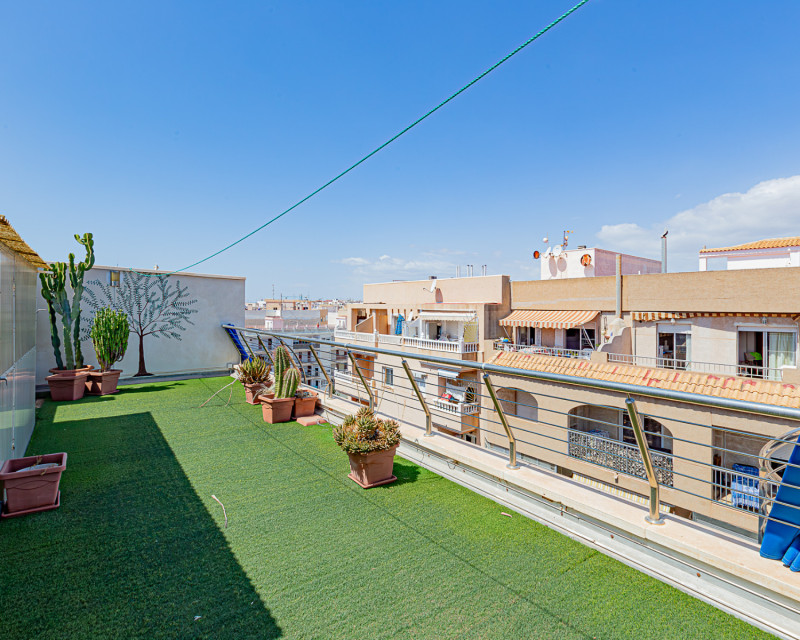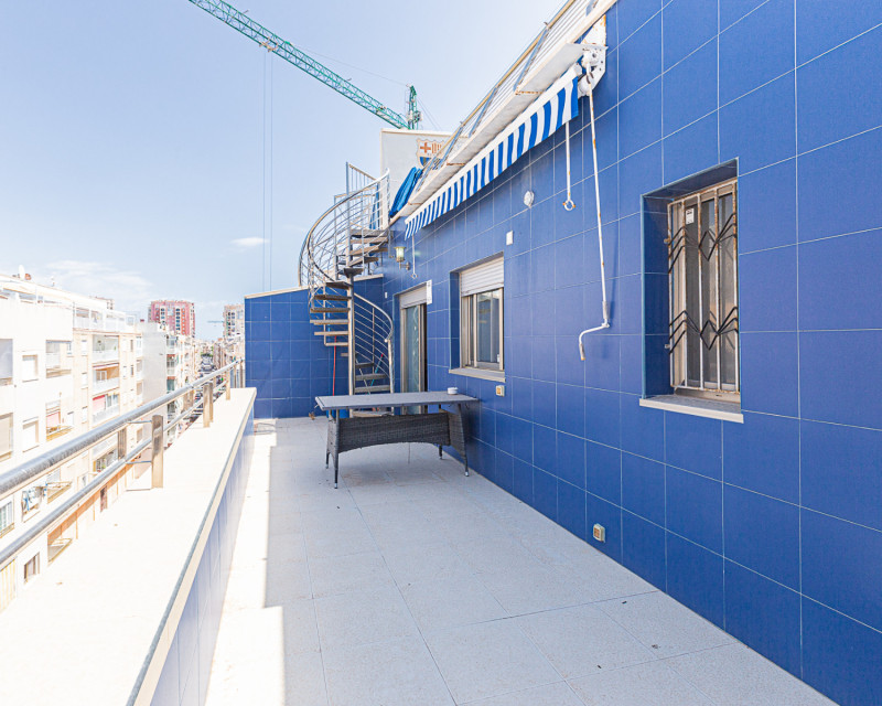 Fifth-floor penthouse that offers luxury, comfort, and an enviable location. With three bedrooms and two bathrooms, including an en-suite bathroom, this property stands out for its design and functionality. Upon entering, you will be greeted by a spacious living and dining area that seamlessly connect and open to the independent kitchen. From here, the space flows to a large terrace, ideal for relaxing and enjoying the fresh air and panoramic views. Comfort is maximized through the central air conditioning, ensuring a pleasant environment year-round. This property is sold furnished, facilitating the move and the start of uncomplicated coastal living. An invaluable addition is the garage parking space, ensuring your vehicle's safety and providing you with the convenience you deserve. Additionally, the location is a dream: just 2 meters from the beach, meaning the sea is right at your doorstep. The property also offers an additional terrace accessible via an elegant spiral staircase, providing a tranquil spot for sunbathing and unmatched views. The location couldn't be better: surrounded by bars, restaurants, and all the necessary amenities for vibrant coastal living. This is your opportunity to secure a relaxed and exclusive lifestyle in an exceptionally convenient place. Don't miss this unique opportunity. Contact us today for more information and secure your visit to this spectacular property. Contact us today!